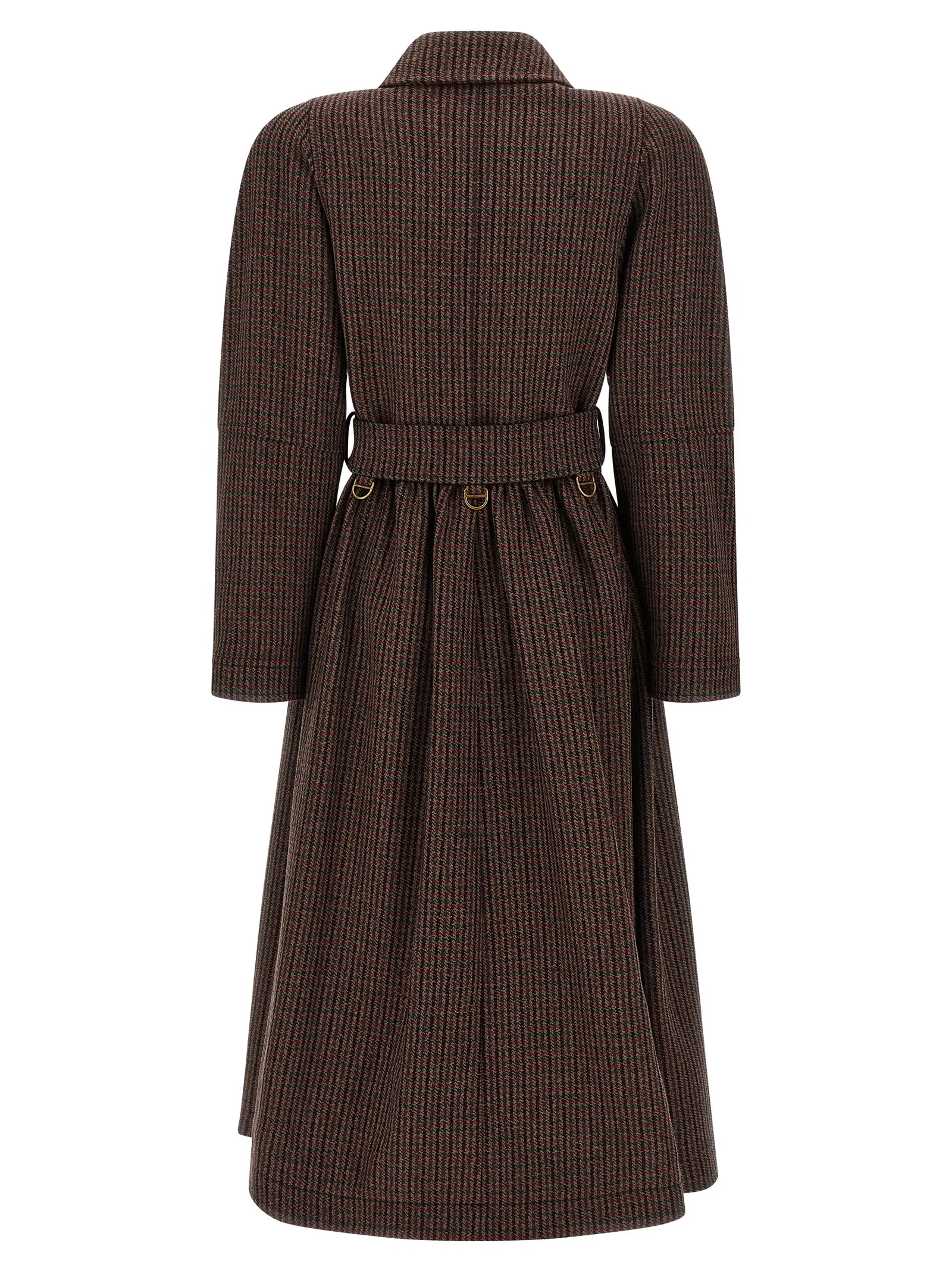Вишукане коричневе пальто з подвійною застібкою на ґудзики виготовлене з преміальної вовни з додаванням поліаміду, що гарантує тепло та довговічність. Елегантний сорочковий комір, підкладка з віскози та бавовни забезпечують комфорт, а знімний пояс дозволяє регулювати силует, підкреслюючи індивідуальний стиль і статус.