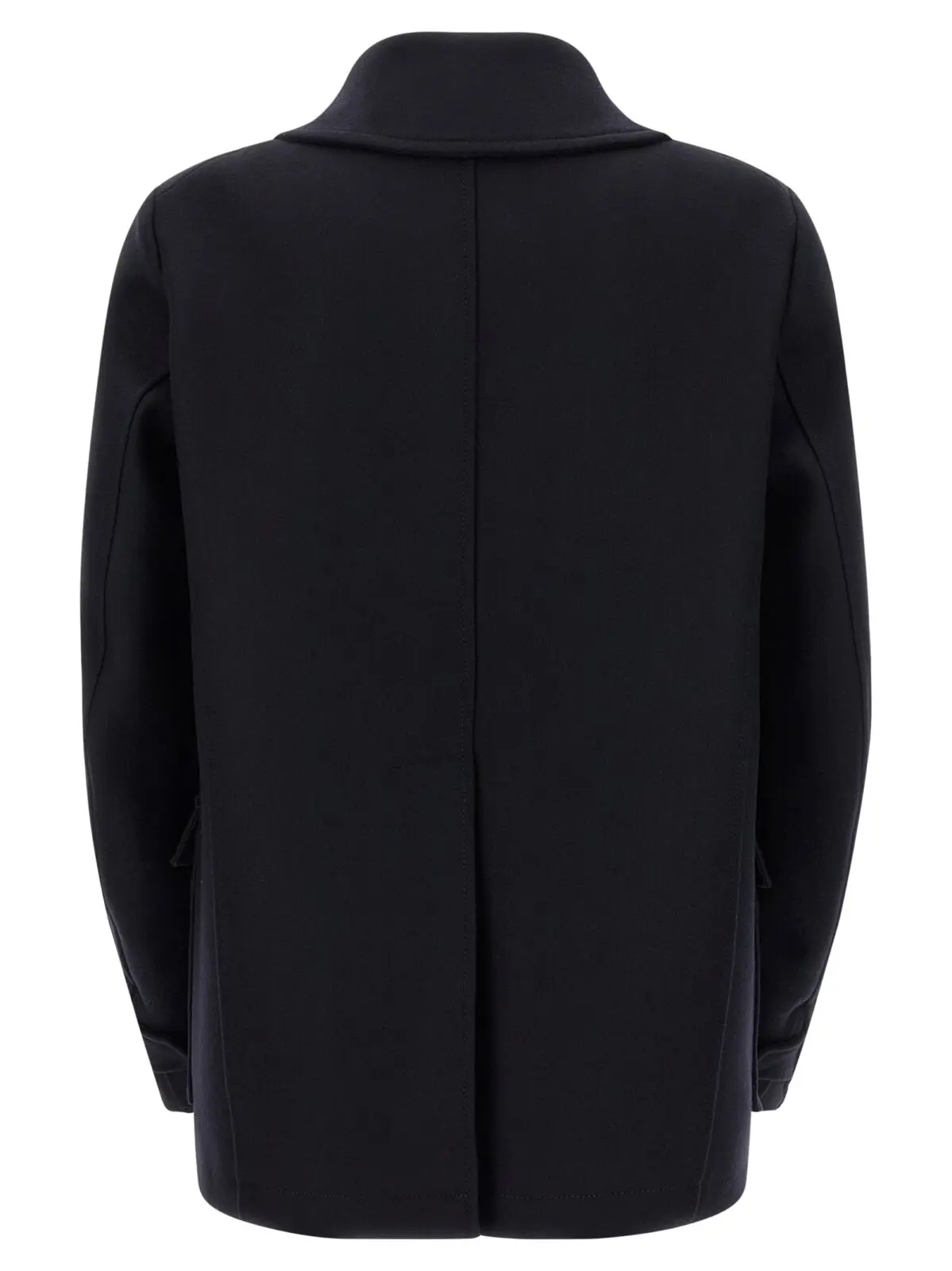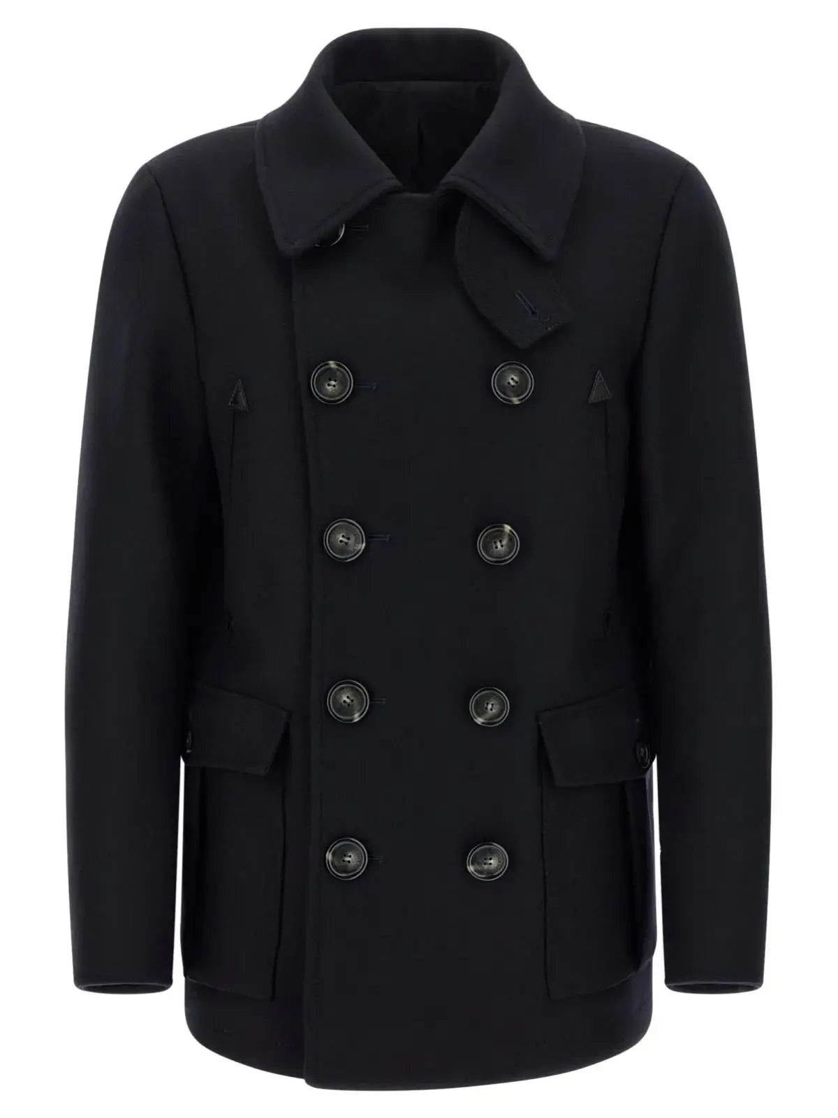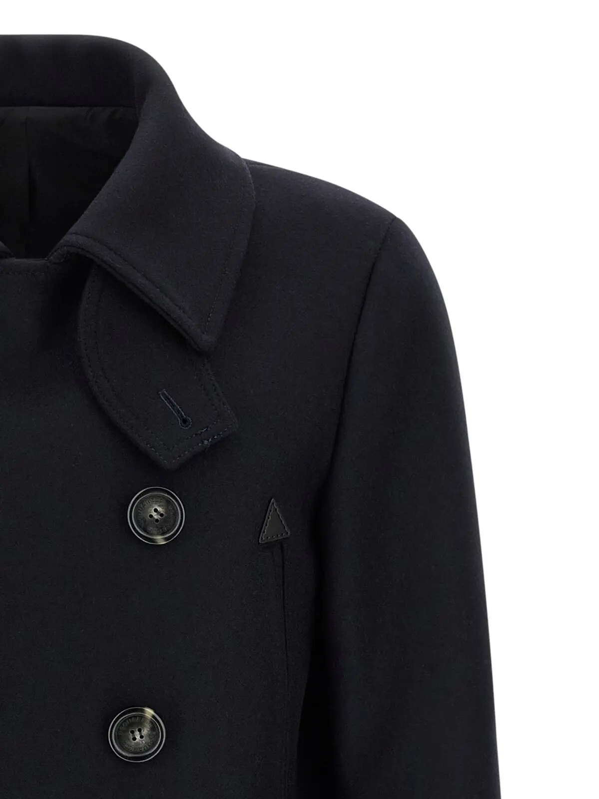 Вишукане чоловіче пальто з валяної вовни насиченого синього відтінку поєднує в собі високоякісні матеріали з інноваційним дизайном: комір із застібкою, фронтальна застібка на ґудзики, практичні кишені та подовжені рукави з манжетами. Внутрішнє оздоблення з монограмним підкладом підкреслює статусність і універсальність цього предмету гардеробу, що ідеально доповнює стиль сучасного джентльмена.