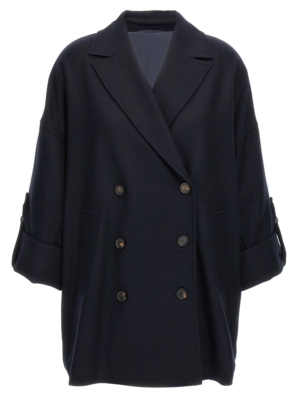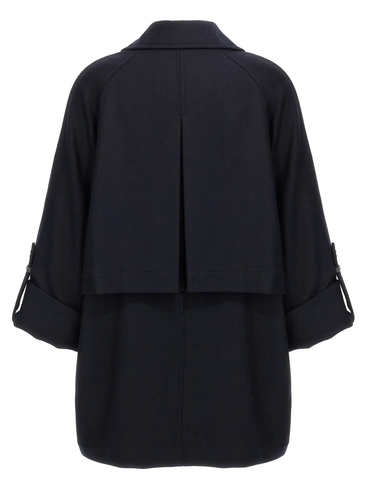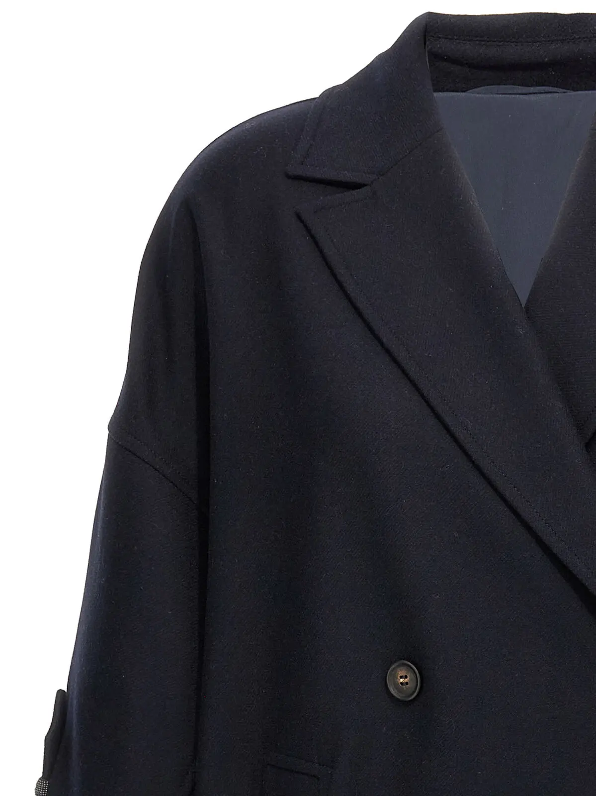 Пальто-кабан з блискучими манжетами Brunello Cucinelli Синє
