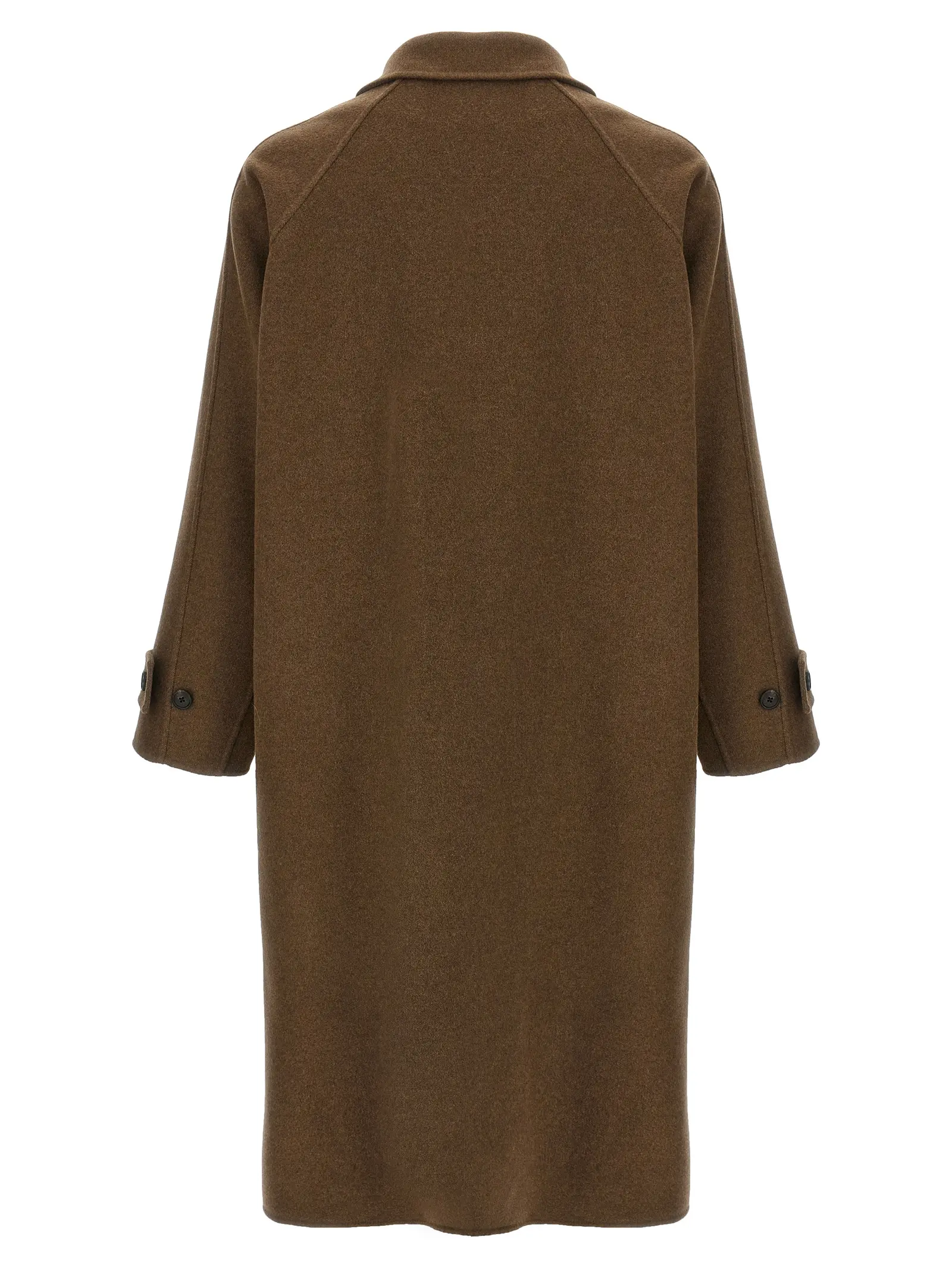 Стриманий силует із сорочковим коміром та хлястиком випромінює спокійну впевненість завдяки поєднанню натуральної вовни та м’якого кашеміру. Рукави реглан формують плавні лінії плечей, а прихована застібка додає конструкції лаконічності. Кожна деталь цієї речі, від глибоких кишень до вивіреного крою, підкреслює шляхетну текстуру полотна та дарує винятковий затишок.
