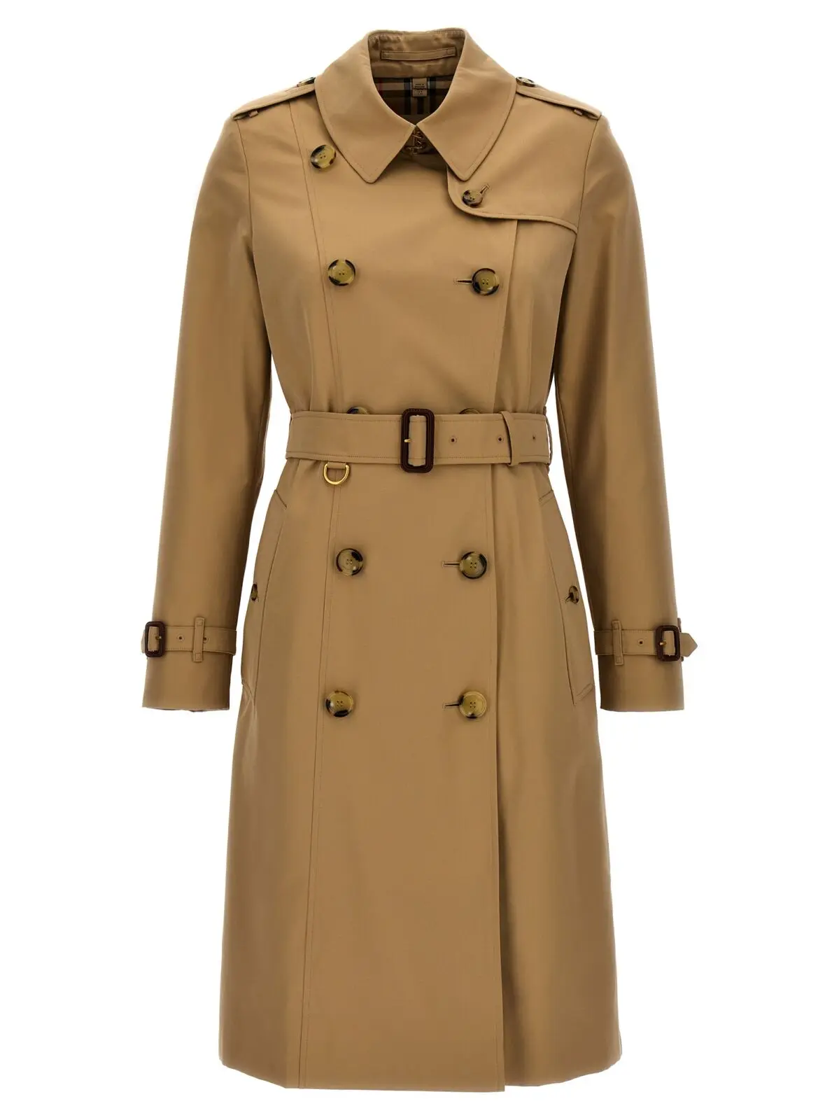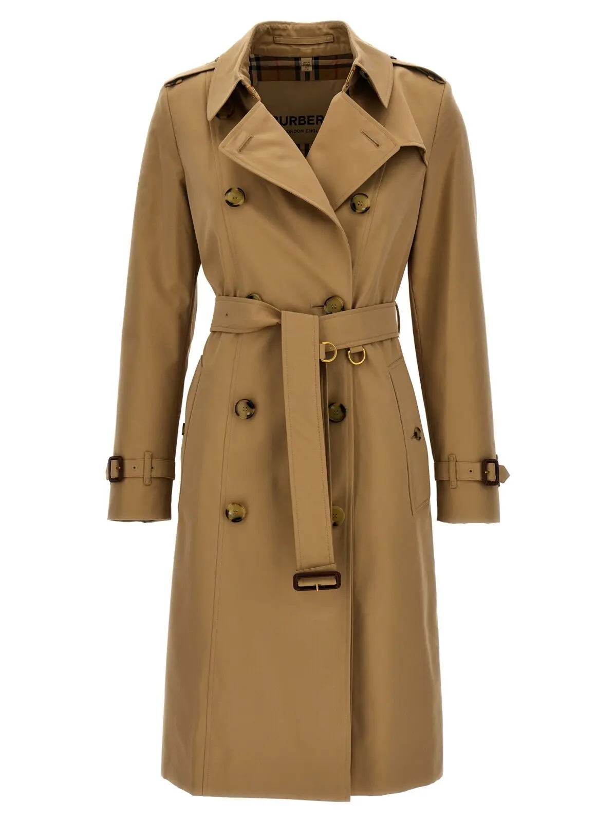 Довге пальто The Chelsea від Burberry – це бежевий жіночий тренч з подвійним застібанням на ґудзики і регульованим та знімним поясом. Виготовлене з 100% бавовни.