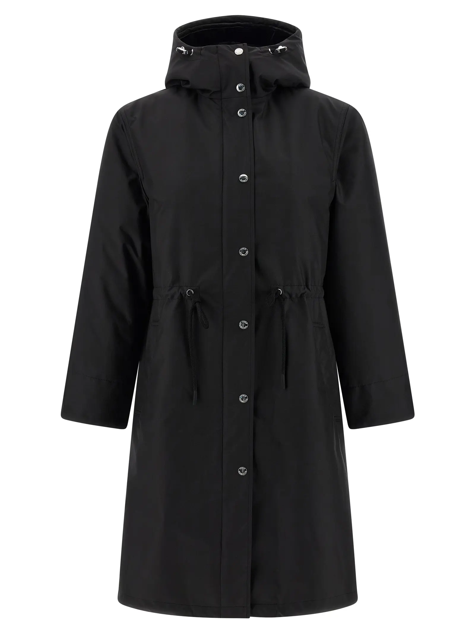Верхній шар виготовлений із технічної тканини. Капюшон регульований. Передня застібка на блискавку та кнопки. На виробі є кишені. Талія регулюється зав’язками. Рукава довгі. Внутрішня частина знімна, виконана з стьобаного нейлону. Внутрішній капюшон оздоблений овчиною. Внутрішня частина має довгі рукави. Застібка внутрішньої частини на блискавку. Склад 80 відсотків поліаміду та 20 відсотків овчини.