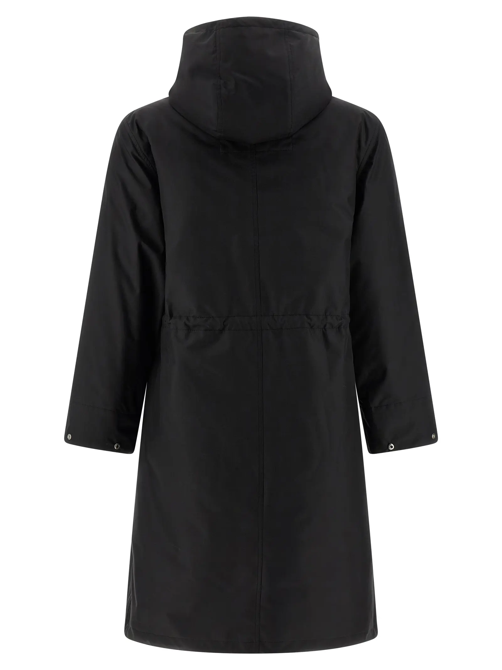Чорна парка 2-в-1 виконана з високотехнологічної тканини та натуральної овчини, поєднуючи інноваційність і бездоганну якість. Регульований капюшон, застібка на блискавку та кнопки, а також елегантні деталі забезпечують комфорт і універсальність, підкреслюючи статус і вишуканий стиль власниці.