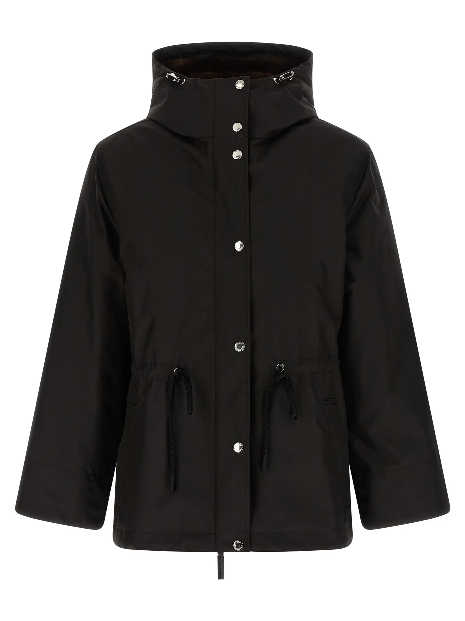 Чорна парка 2-в-1 виготовлена з високоякісної технічної тканини з вишуканою вставкою з норкового хутра, що забезпечує тепло та комфорт. Регульований каптур, застібка на блискавку та кнопки, а також знімна стьобана внутрішня частина роблять цей виріб універсальним і функціональним. Елегантний дизайн із шнурком на талії підкреслює силует, створюючи неперевершений образ статусу та стилю для сучасної жінки.