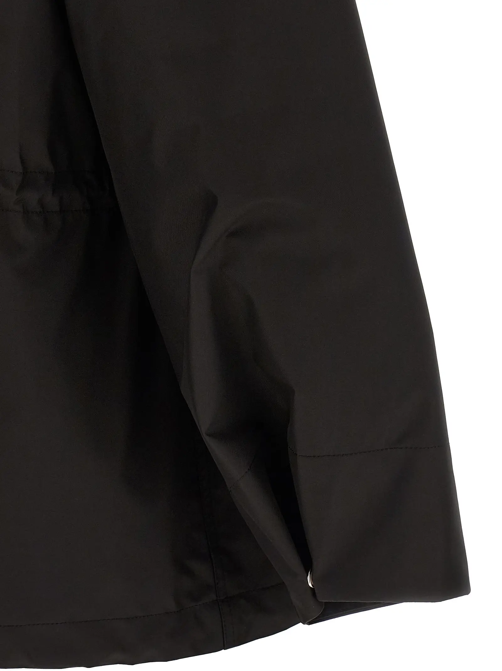 Зовнішній шар виконаний з технічної тканини. Каптур регулюється. Застібка на блискавку та кнопки спереду. Присутні кишені. Довгі рукави. Шнурок на талії та внизу виробу. Внутрішня частина знімна, виконана з стьобаної технічної тканини. Вставка з норкового хутра. Застібка внутрішньої частини на блискавку. Склад тканини 80 відсотків поліестеру, 20 відсотків норки.