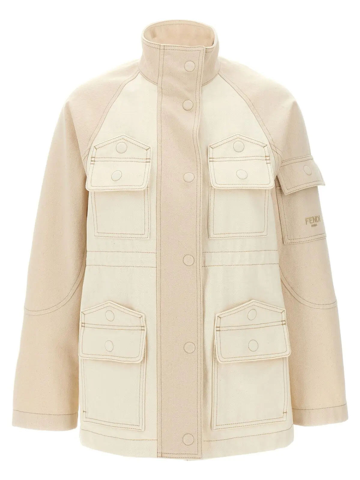 Ця бежева жіноча парка з двохтонного бавовняного деніму від Fendi вражає своєю елегантністю та універсальністю. Виготовлена з 100% бавовни, вона поєднує комфорт і стиль, підкреслюючи високий статус свого власника. Контрастна прострочка, регульований шнурок на талії, високий комір і функціональні кишені надають виробу сучасного вигляду. Інноваційний дизайн та бездоганна якість матеріалів роблять цю парку ідеальним вибором для будь-якої модниці.
