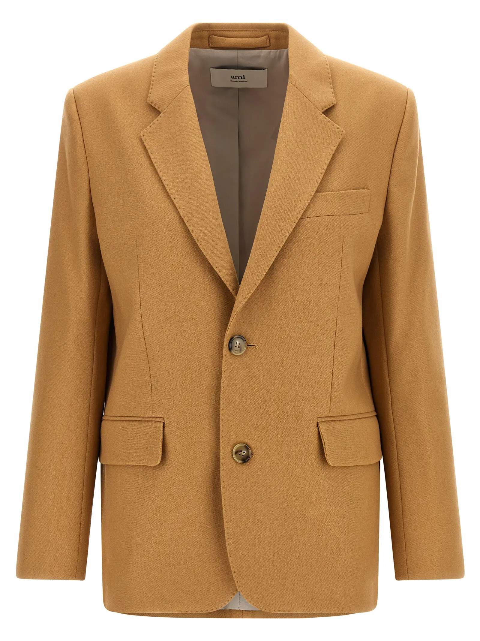 Елегантний жіночий піджак бежевого кольору з 100% нової вовни вирізняється витонченим кроєм з однобортною застібкою, дзеркальними лацканами та структурованими плечима, поєднуючи інноваційність і комфорт завдяки підкладці з бавовняної суміші, що підкреслює статус і неперевершений стиль.