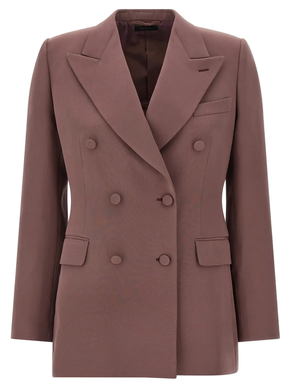 Вишуканий жіночий піджак Flavia від Brioni, виконаний із 100% шовку, поєднує в собі бездоганний крій, подвійну застібку на ґудзики та елегантні лацкани з загостреними кінцями. Легкий піджак з структурованими плечима, функціональними кишенями та підкладкою з купро забезпечує комфорт і універсальність, підкреслюючи статус і неперевершений стиль.