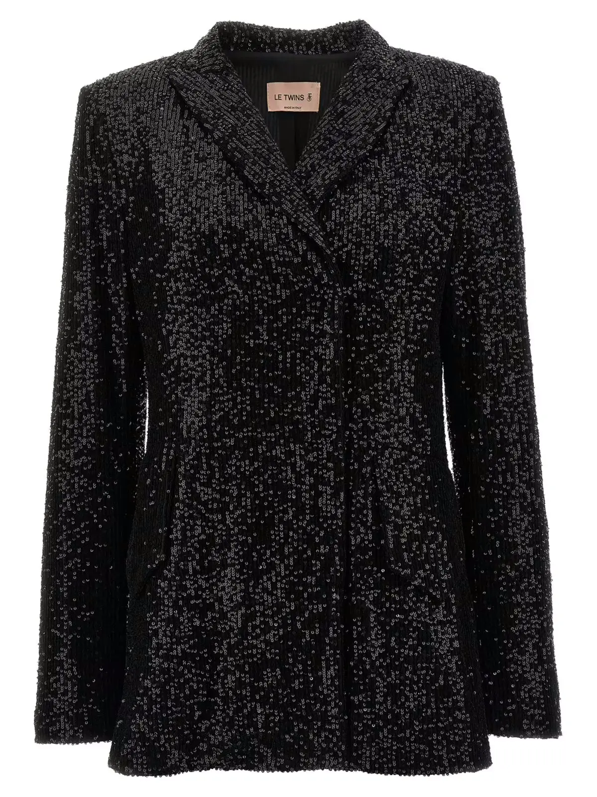 Представляємо вам жіночий піджак Como з подвійним запахом від Le Twins. Цей чорний піджак виконаний зі всією блискучою пайєткою, має застібку на ґудзики, кишені та довгі рукава. Виготовлений з 95% поліестеру та 5% еластану, цей піджак поєднує в собі стиль та комфорт.