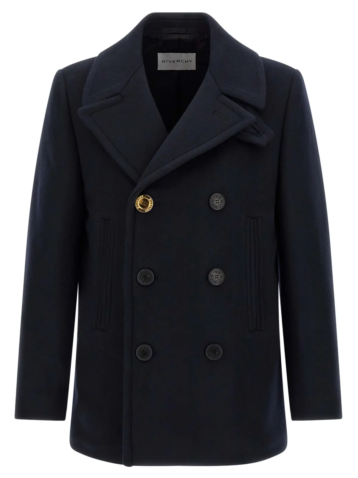 Подвійне застібання на ґудзики. Виготовлено з 100% вовни. Застібка на ґудзики з логотипом на верхній частині. Наявні бічні кишені. Довгі рукави.