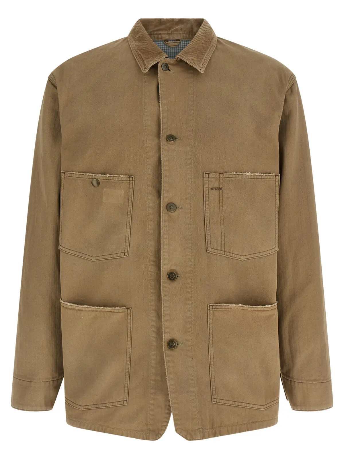 Виготовлений з бавовняного полотна з ефектом потертості. Підкладка з бавовняної тканини в клітинку. Комір з вельвету. Застібається на гудзики спереду. Має кишені. Довгі рукави з регульованими манжетами. Склад 100 відсотків бавовна.