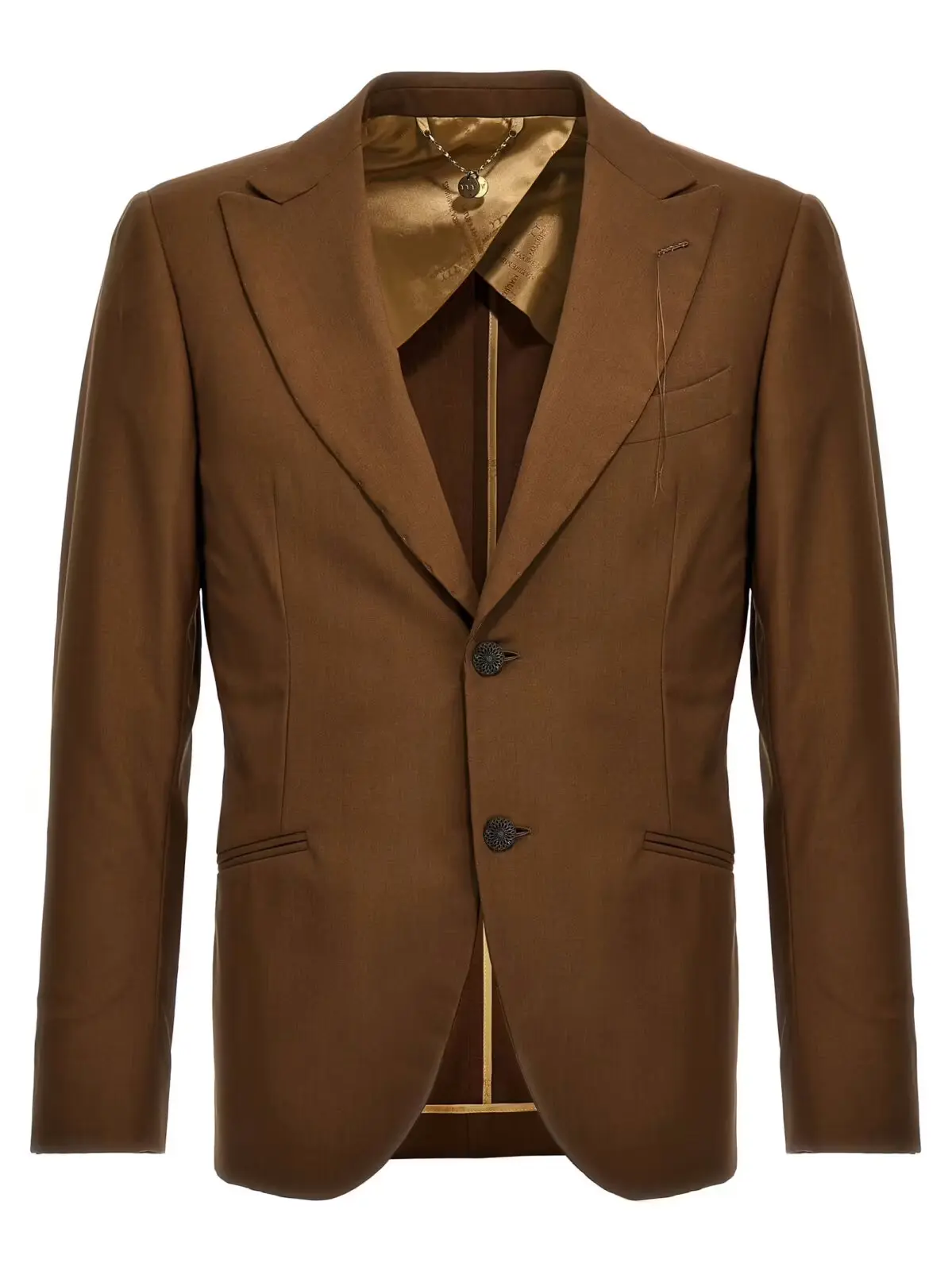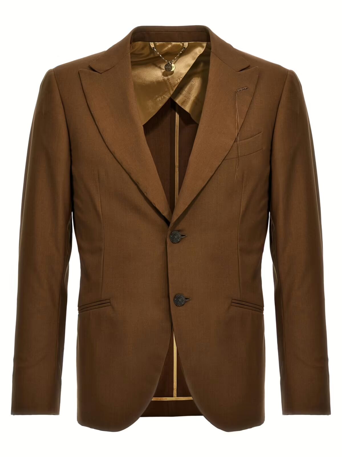 Піджак Keanu Maurizio Miri коричневого кольору для чоловіків з однорядним застібанням на ґудзик, кишенями, довгими рукавами та задніми вентиляційними отворами. Виготовлений з 100% вовни.