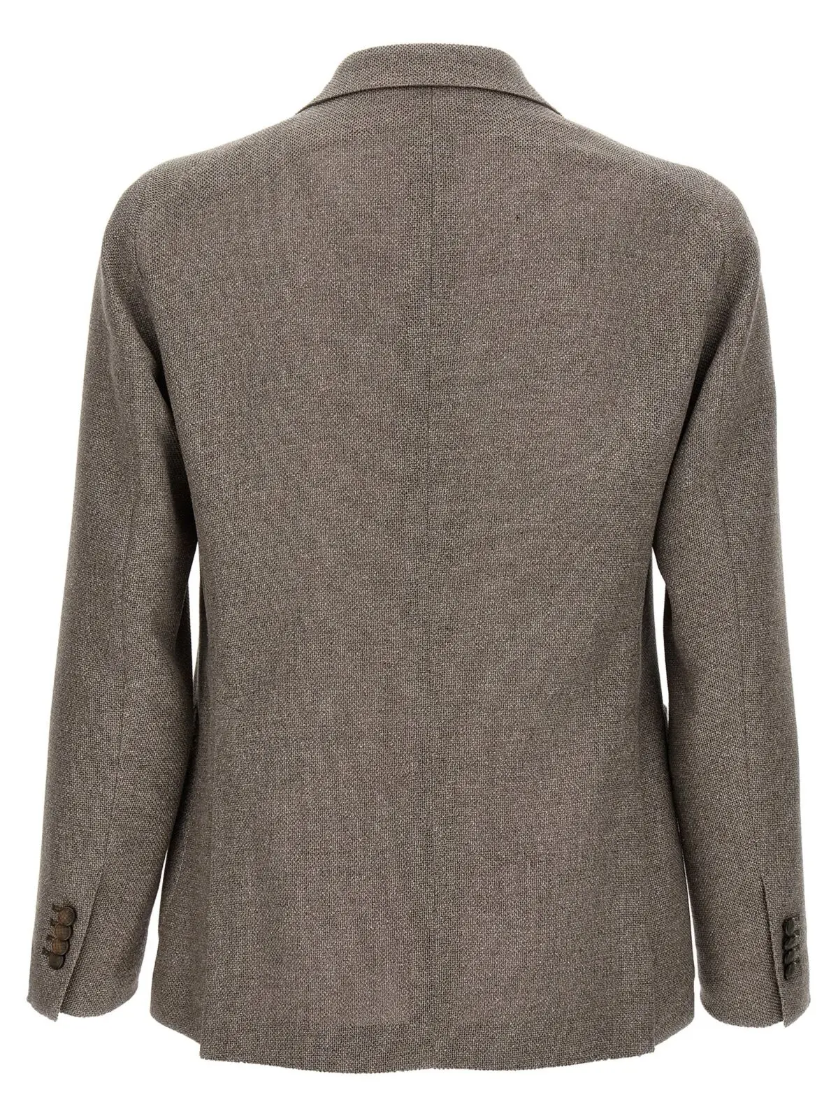 Піджак Tagliatore Montecarlo виконаний із розкішної суміші шовку та нової вовни, поєднує вишуканий дизайн із функціональністю завдяки двобортній застібці, відкладному коміру та практичним кишеням. Легкий, не підкладений, з елегантною брошкою, цей виріб підкреслює статус і стиль, даруючи незрівнянну універсальність для сучасного чоловіка.