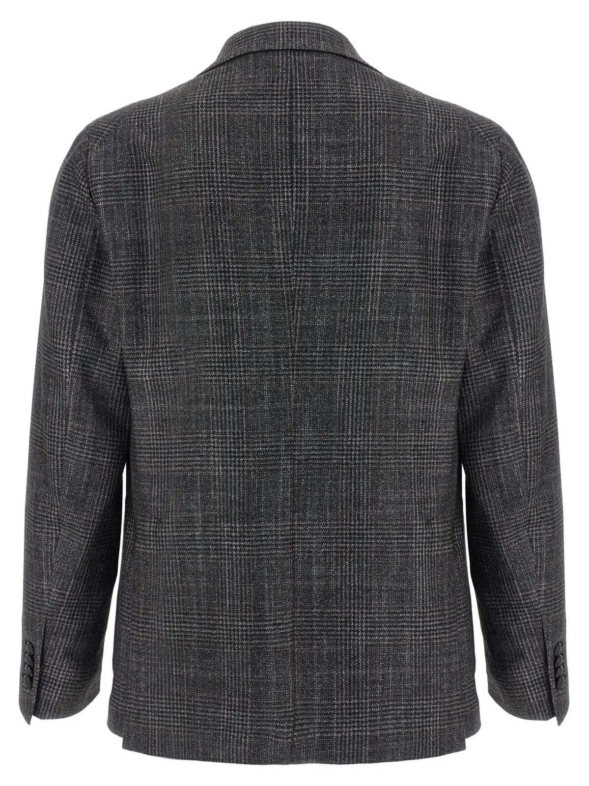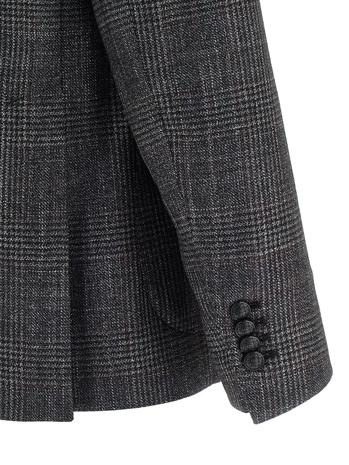 Цей чоловічий піджак із клітинним візерунком поєднує у собі вишуканість та інноваційність завдяки преміальній суміші ніжної вовни, шовку та кашеміру. Модель з однобортною застібкою, піковими лацканами та знімною металевою брошкою підкреслює бездоганний стиль і статус, забезпечуючи комфорт та універсальність для сучасного образу.