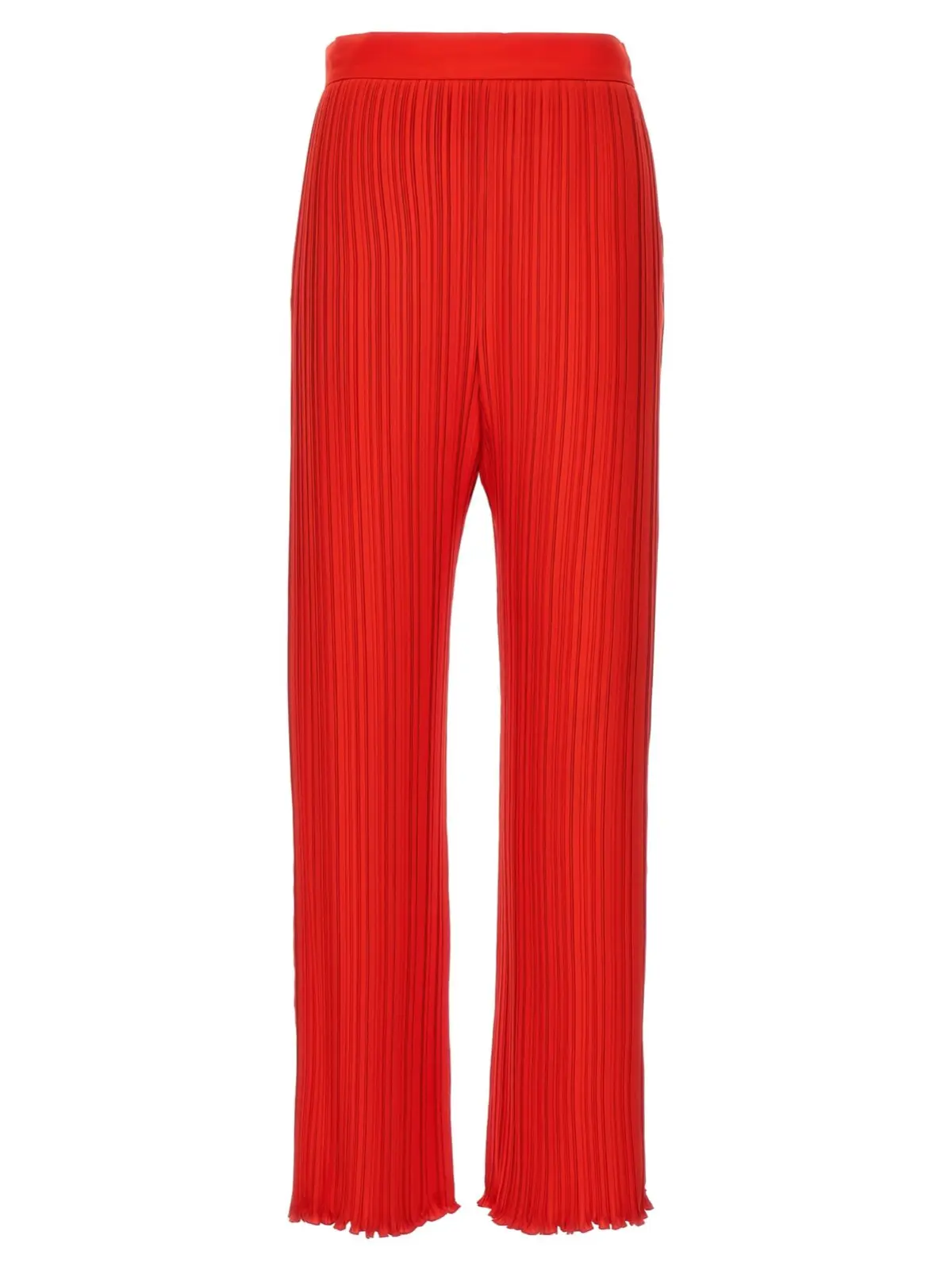 Плісировані штани Lanvin – це червоні жіночі штани з широкою ногавкою, з бічним застібанням на блискавці. Вони виготовлені з 100% поліестеру.