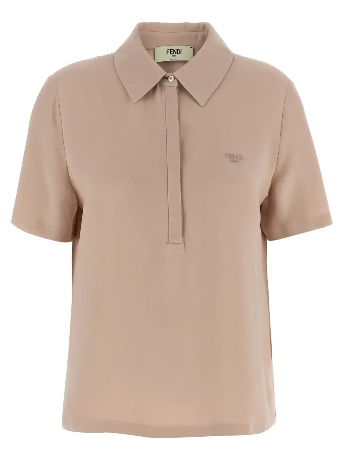 Елегантне жіноче поло з рожевого шовкового каді, оздоблене тонко витканою емблемою в тон на передній частині, комірі та ґудзиках, з короткими рукавами та боковими розрізами. Витончений дизайн та преміальна якість натурального шовку підкреслюють статус і бездоганний стиль.