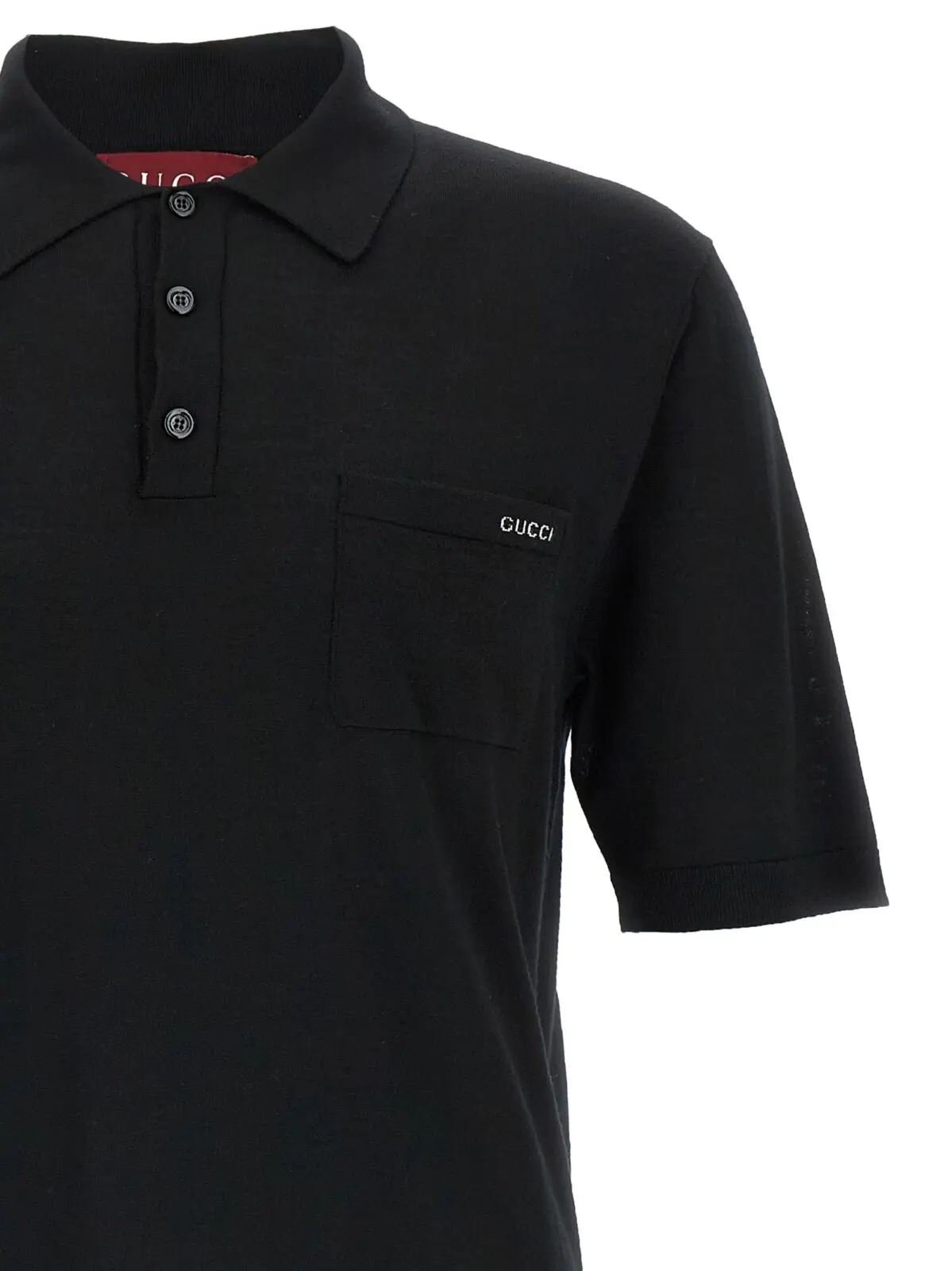 Елегантне чоловіче поло з тонкої вовни преміум-класу, виконане у глибокому чорному відтінку, з вишуканою вишивкою Intarsio Gucci на нагрудній кишені. Витончений дизайн із комірцем і декоративними ґудзиками поєднує стиль, комфорт та статус, підкреслюючи інноваційність та універсальність образу.