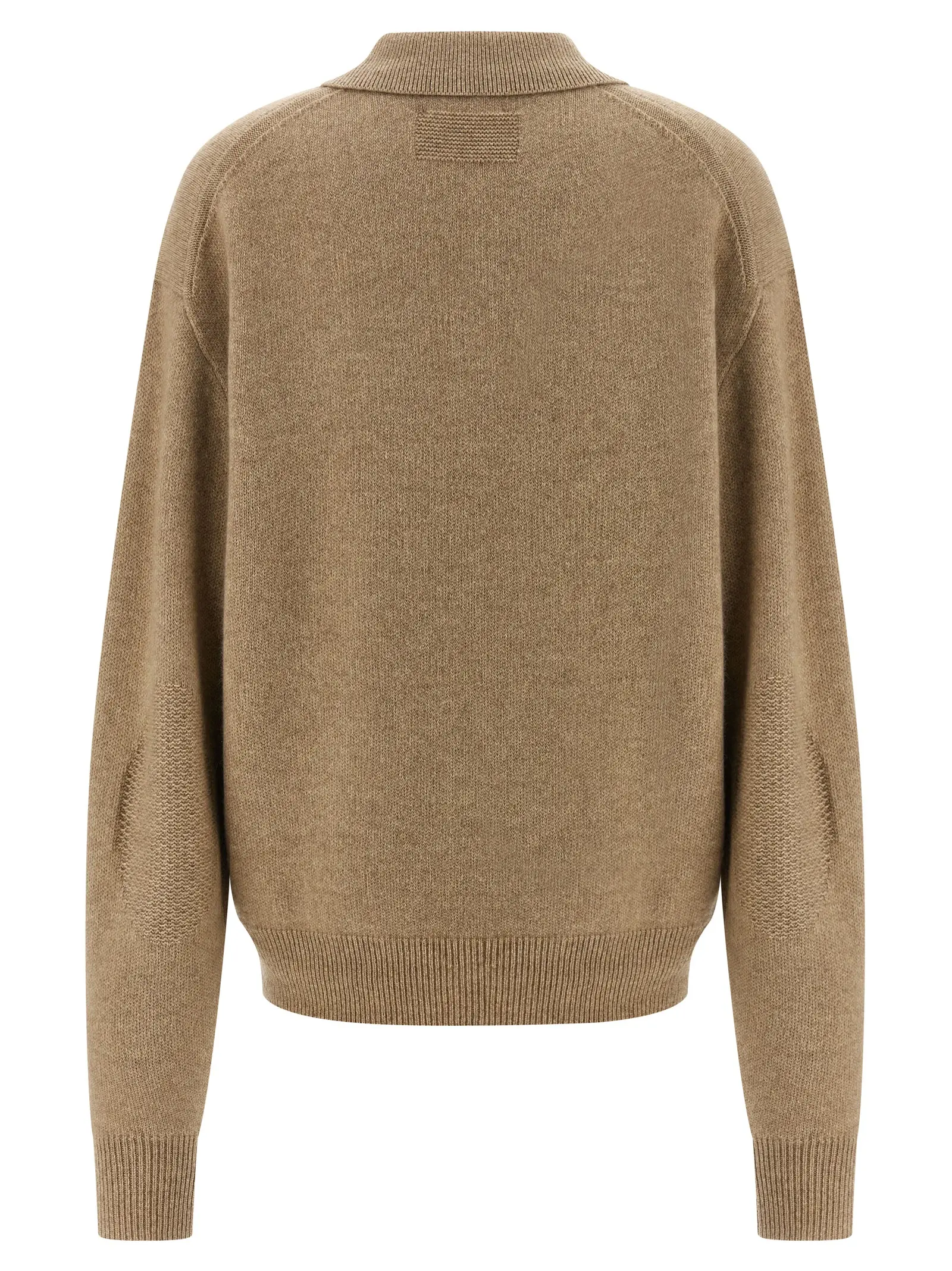Жіноче поло з колекції Allday виготовлене з 100% середньої ваги кашеміру, що забезпечує неперевершену м’якість і комфорт. Витончений бежевий відтінок, класичний комірець з ґудзиками, довгі рукави з манжетами та унікальна фактура на ліктях підкреслюють інноваційний дизайн і універсальність цього виробу, що ідеально поєднує стиль та статус.