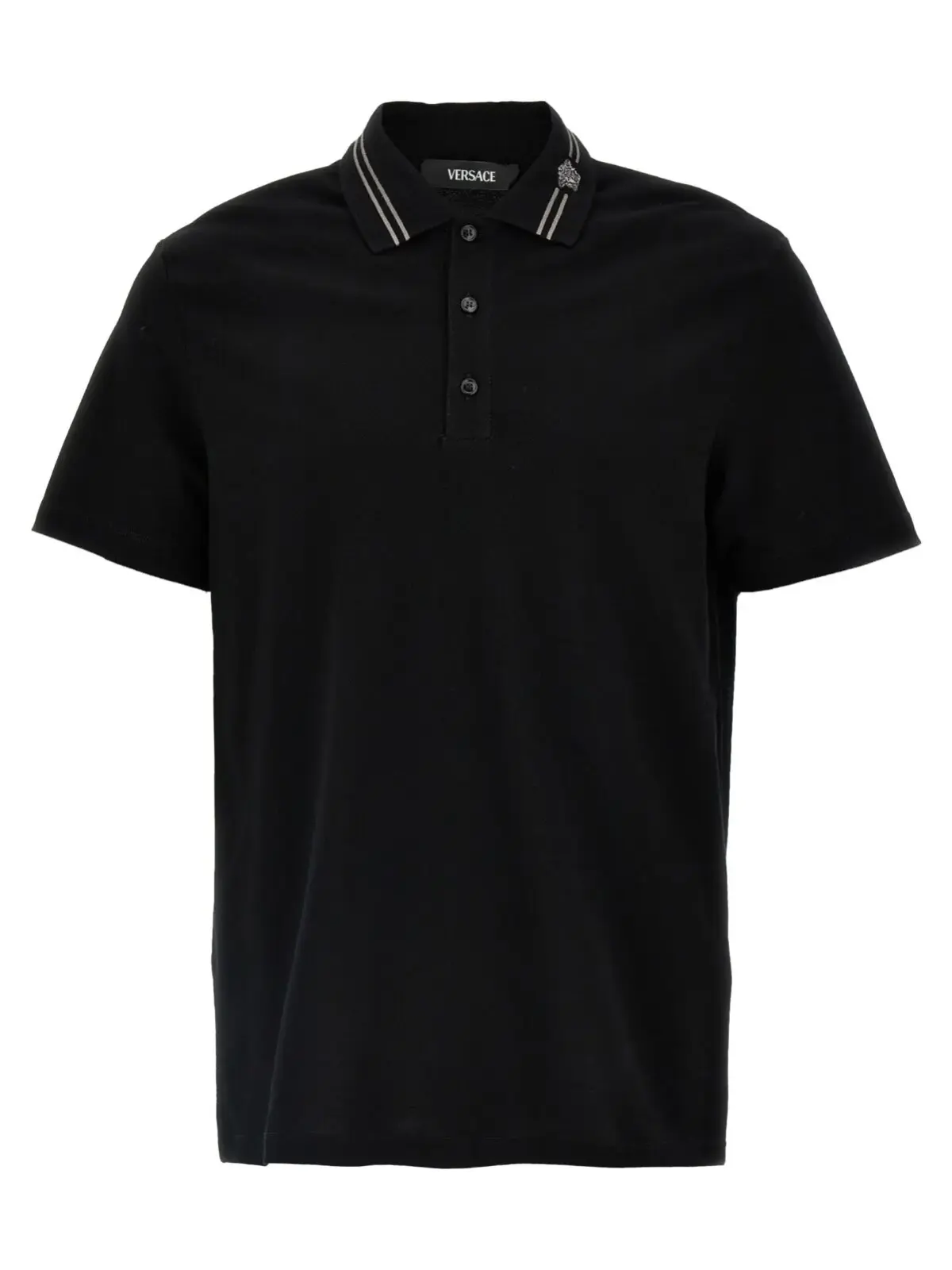 Чорне поло з вишивкою Медузи від Versace – це втілення елегантності та розкоші. Виготовлене з 100% бавовни, воно дарує комфорт і зручність під час носіння. Особливістю дизайну є вишивка логотипу на комірі, доповнена контрастними смужками, що підкреслює стильний вигляд. Кнопки та короткі рукави додають класичного шику, роблячи цю модель універсальною для будь-якої нагоди. Поло від Versace – це символ статусу та вишуканості, що підкреслить ваш бездоганний смак.