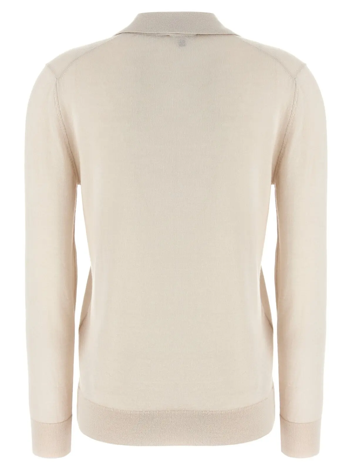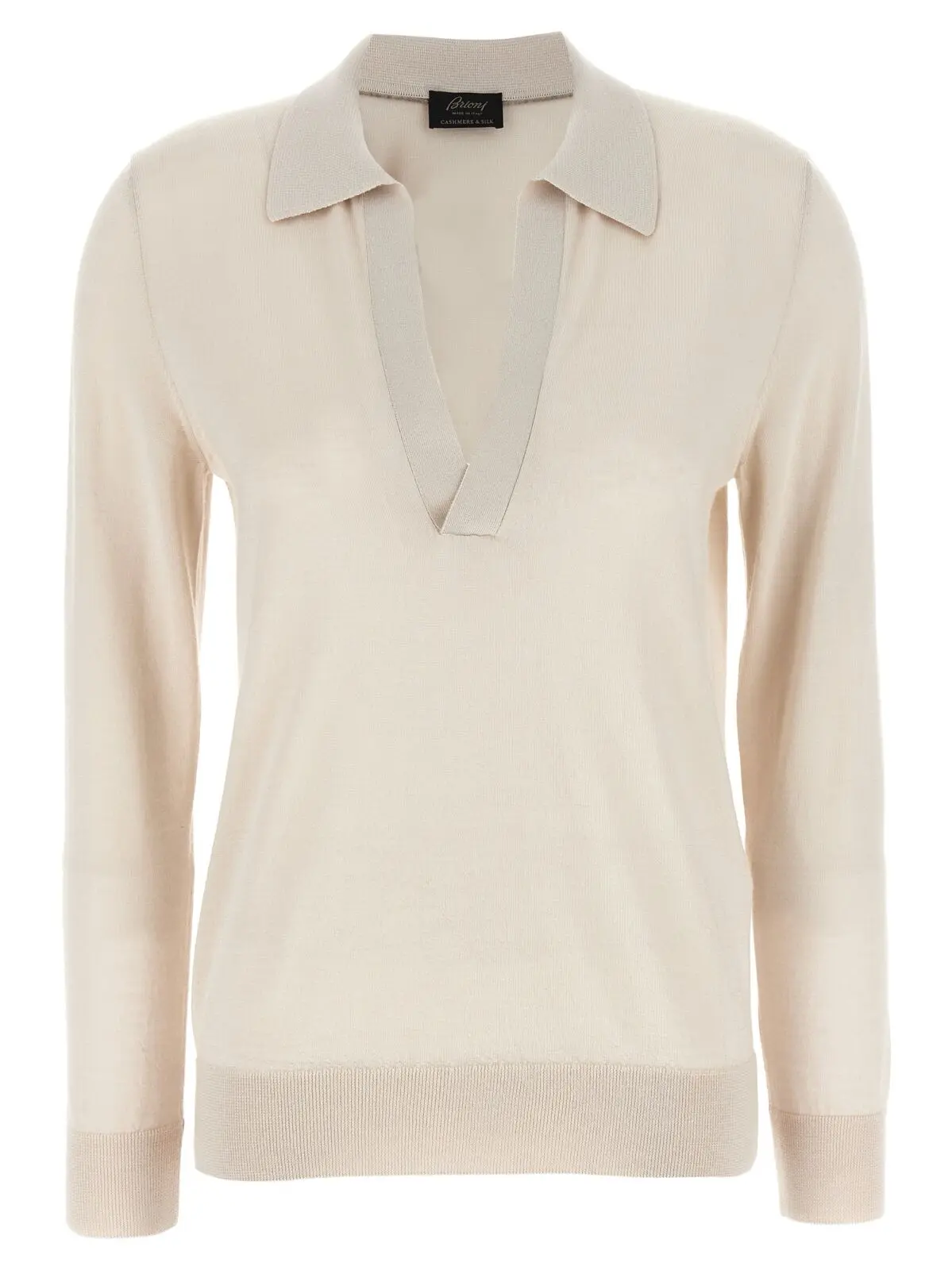Вишукане поло з поєднання кашеміру та шовку найвищої якості, що забезпечує неперевершену м’якість і комфорт, доповнене елегантним коміром та V-подібним вирізом. Універсальний дизайн із довгими рукавами та манжетами підкреслює статус і витончений стиль кожної сучасної жінки.