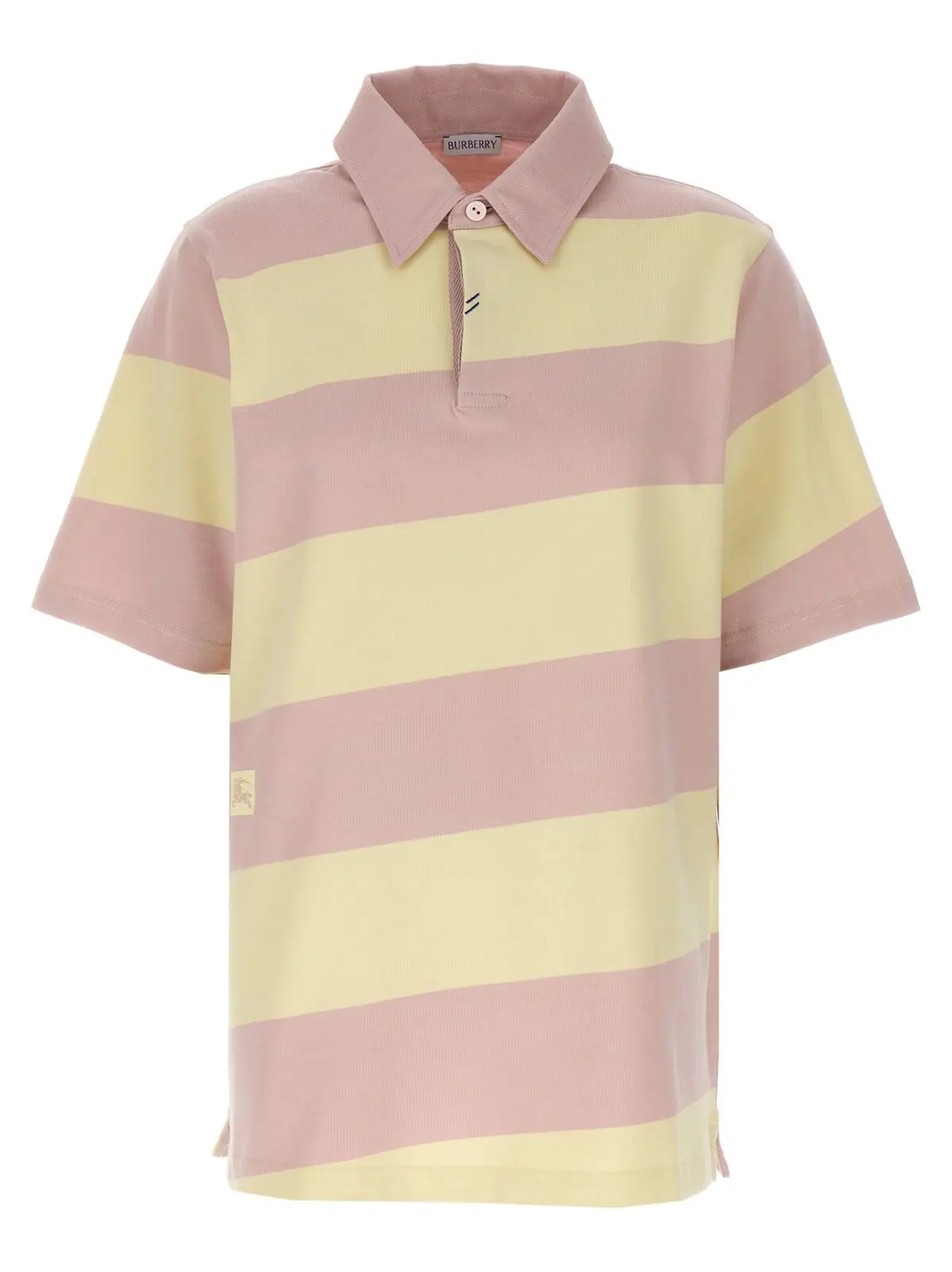 Бавовняна поло-футболка Burberry з різнобарвними смугами, логотипом спереду, коміром, ґудзиками та короткими рукавами.