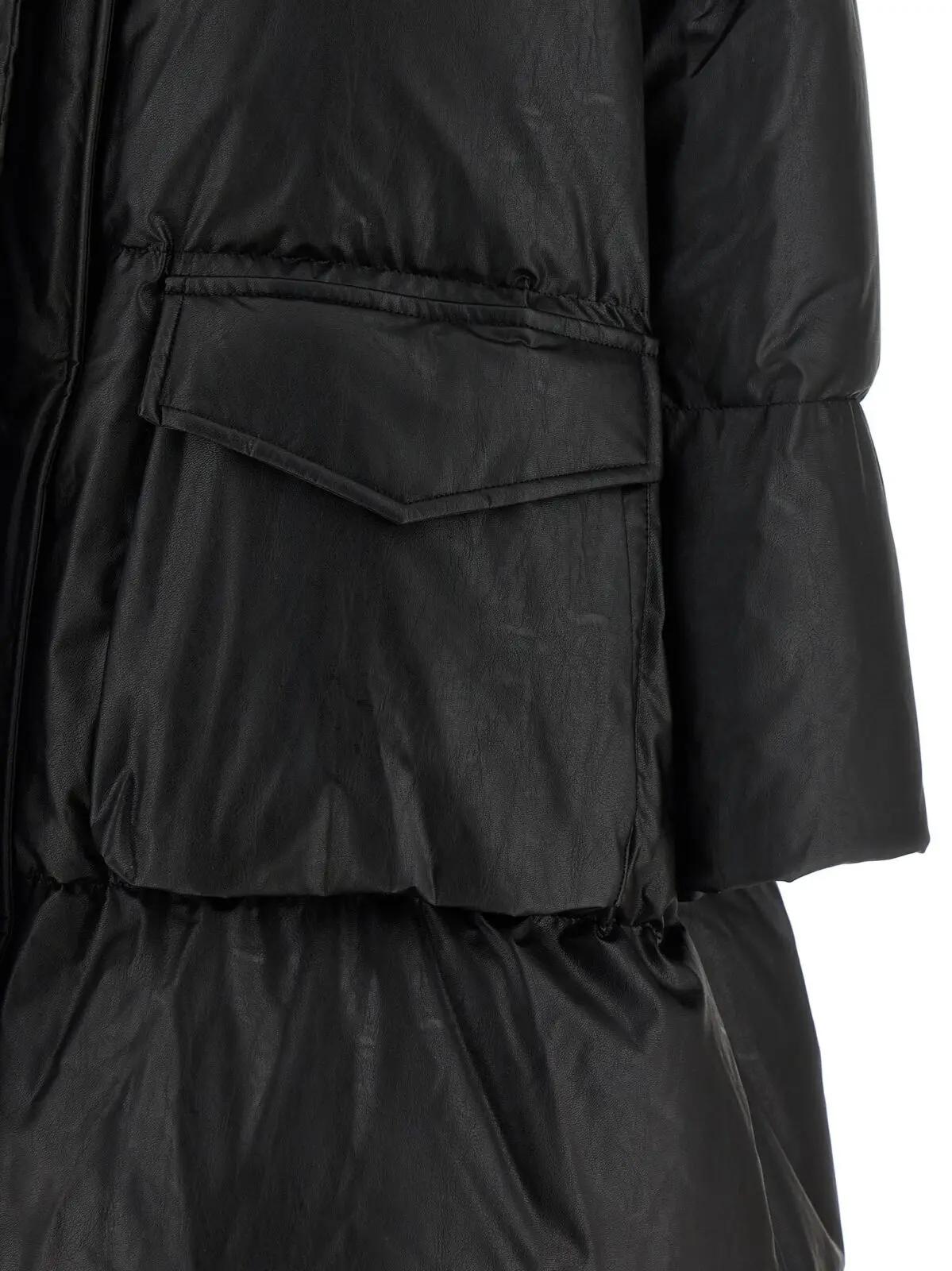 - Довга пухова куртка з стьобаного тканини з ефектом шкіри, покритої віскозою