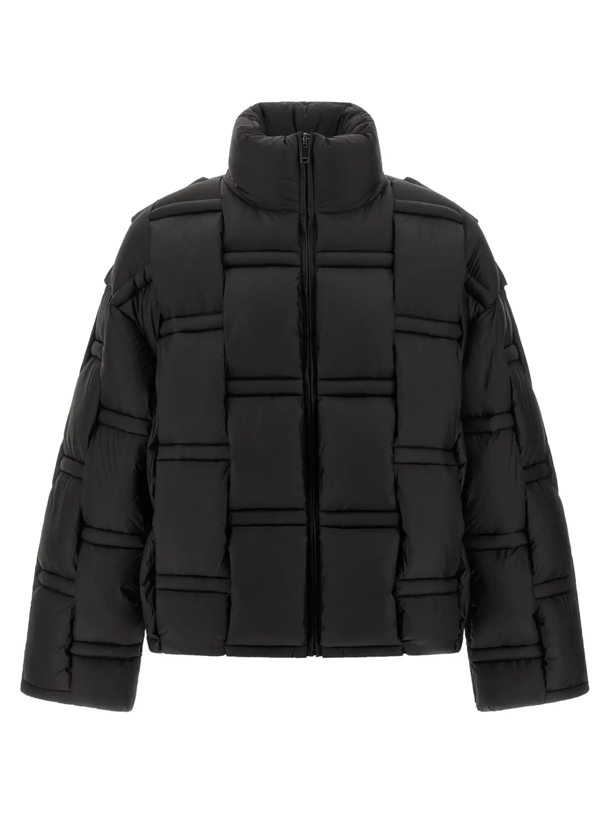Цей чорний пуховик унісекс виготовлений із 100% нейлону з інноваційною тривимірною плетеною структурою, наповнений натуральним гусячим пір’ям для неймовірного комфорту та тепла. Вишуканий дизайн із високим коміром, передньою застібкою на блискавку та функціональними кишенями підкреслює статус і стиль сучасної людини, поєднуючи елегантність із універсальністю.