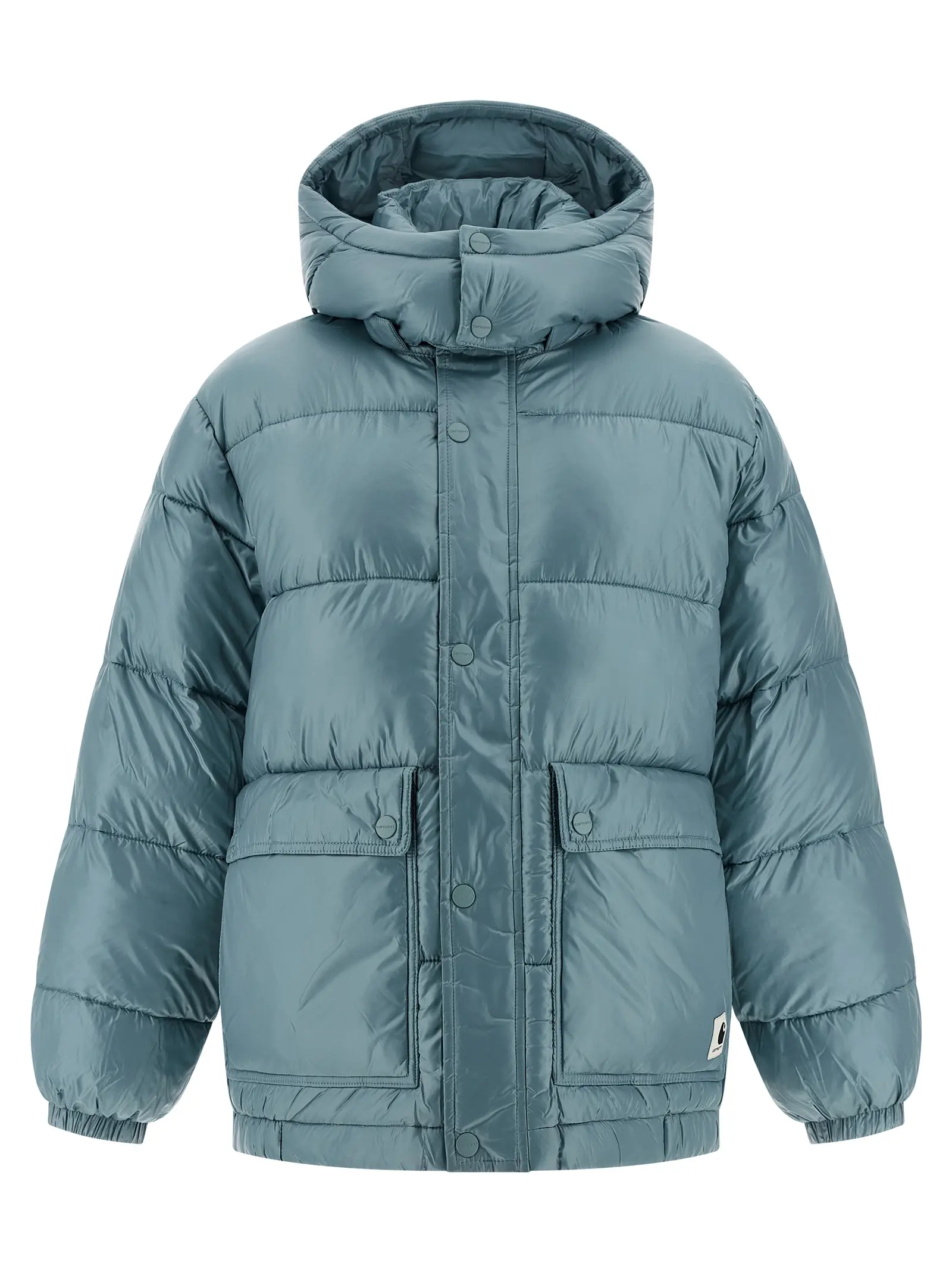 Жіночий пуховик Benson у ніжному блакитному відтінку виготовлений із високоякісного поліестеру з стьобаною текстурою та утепленням, що забезпечує комфорт і тепло. Елегантний дизайн з регульованим і знімним капюшоном, коміром-стійкою, логотипом, застібкою на блискавку й кнопки підкреслює сучасний стиль і статус, а функціональність доповнюють практичні кишені, еластичні манжети та низ для ідеальної посадки.