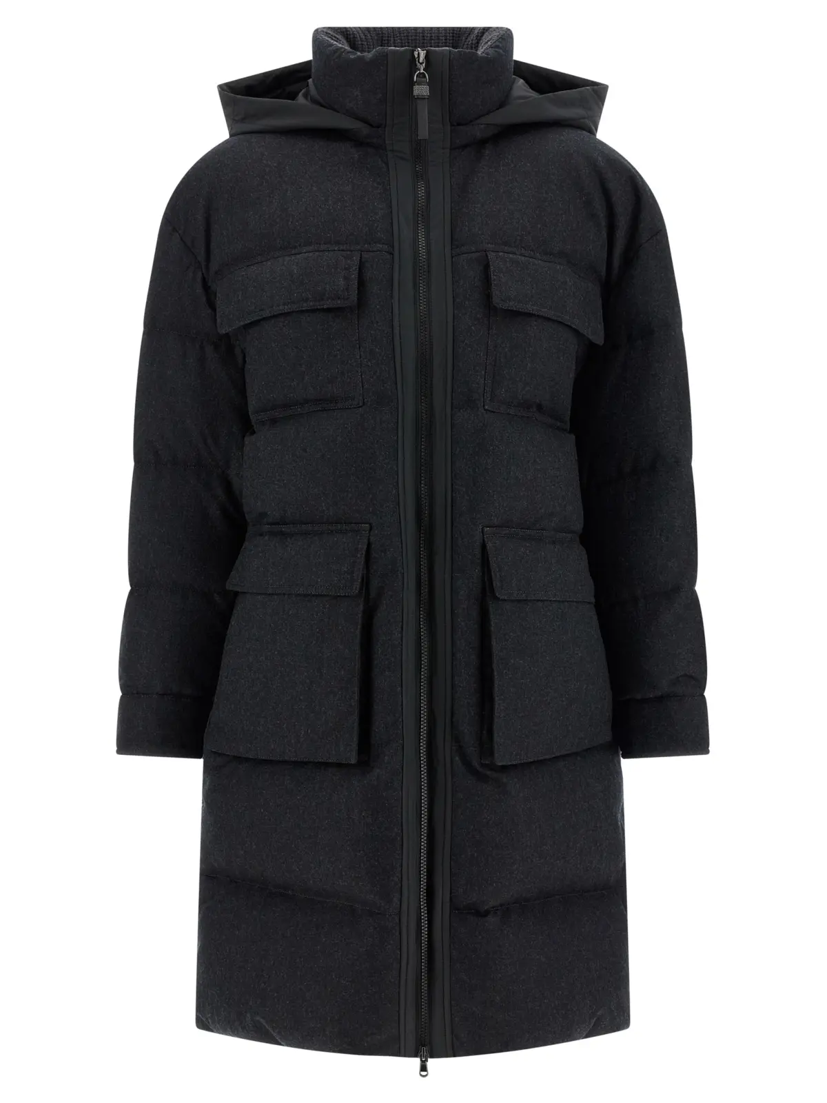 Пуховик довгий Shiny Zipper Pull Brunello Cucinelli Сірий