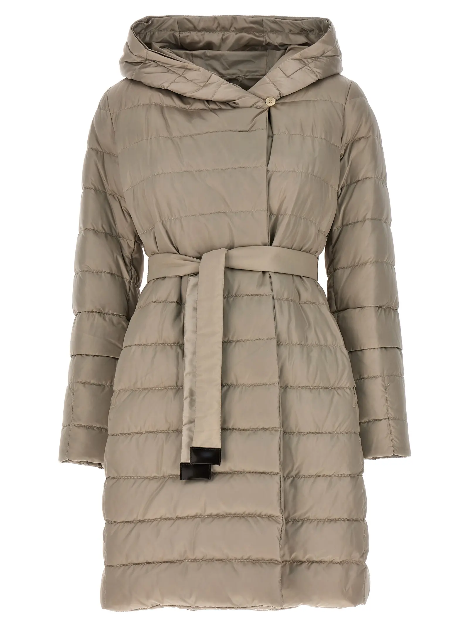 Елегантний реверсивний пуховик міді з водовідштовхувального технічного атласу в бежевому відтінку поєднує в собі інноваційність матеріалів і вишуканий дизайн. Наповнення з натурального гусячого пуху забезпечує тепло, а асиметрична застібка, капюшон і продумані деталі створюють неперевершений стиль і функціональність. Два пояси з тканини та шкіри підкреслюють статус і універсальність цього виробу, що постачається з елегантним логотипованим чохлом.