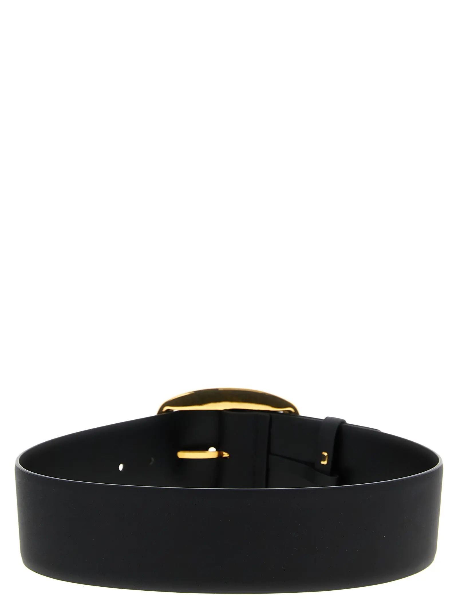 Ремінь із преміальної телячої шкіри чорного кольору втілює витонченість і статус, доповнений великою металевою пряжкою з витонченим гравіюванням логотипу. Цей аксесуар поєднує інноваційний дизайн із бездоганною якістю, забезпечуючи універсальність і вишуканий стиль у будь-якому образі.