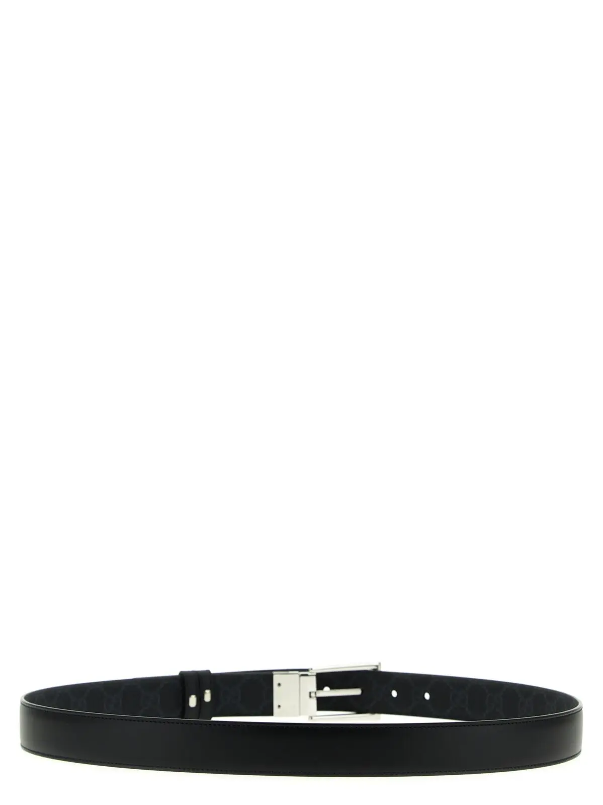 Вишуканий чоловічий ремінь від Gucci з реверсивним дизайном є втіленням класики та універсальності. Цей аксесуар виконаний із високоякісної чорної шкіри, що гарантує його довговічність та елегантний вигляд. Прямокутна пряжка з металу додає ременю сучасного відтінку, а логотип GG Supreme, ненав’язливо розміщений на поверхні, підкреслює приналежність до світово відомого бренду. Реверсивний дизайн дозволяє легко адаптувати ремінь до різних стилів одягу, роблячи його незамінним аксесуаром у гардеробі кожного чоловіка, який цінує розкіш та функціональність.