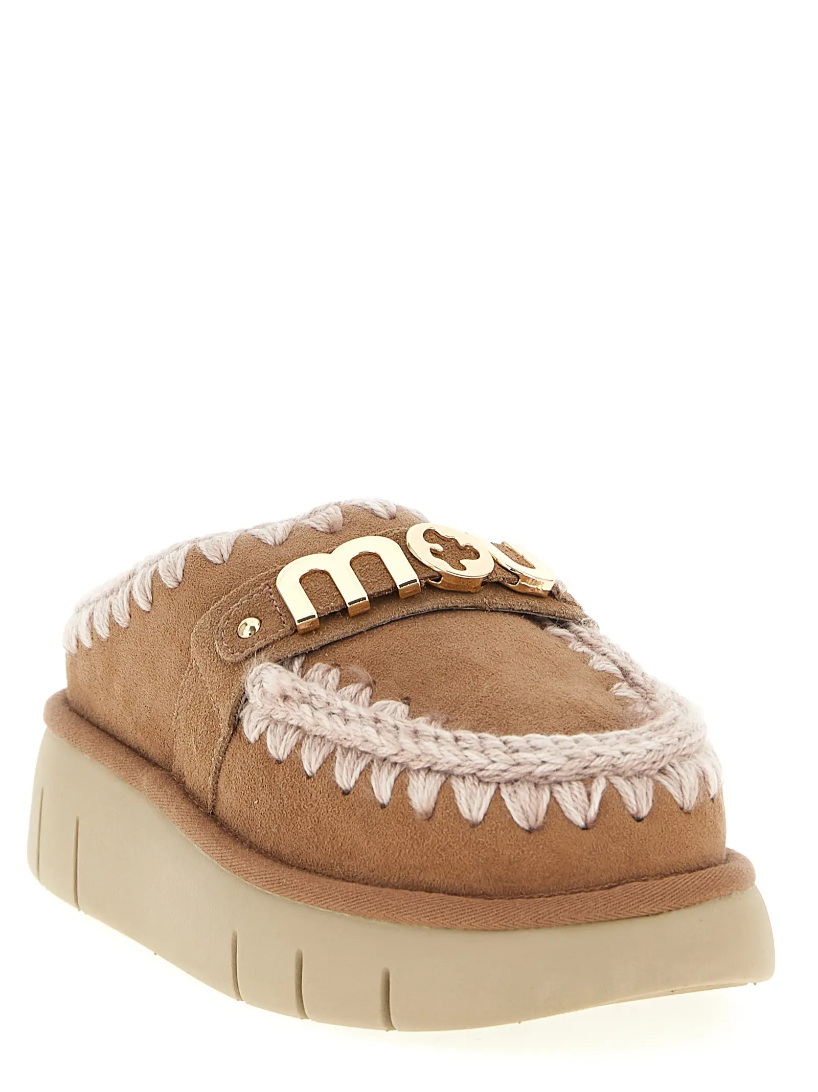 Виготовлені зі 100% овечої шкіри. Мають підкладку з хутра. Оснащені гумовою підошвою. Мають видимі шви. Декоровані металевим логотипом спереду. Виконані у стилі сабо.