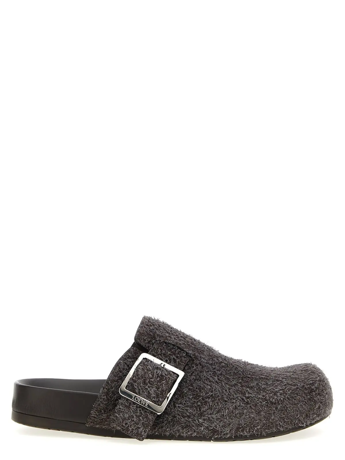 Сабо з колекції Loewe виконані з високоякісної замші коричневого відтінку, поєднують елегантний дизайн з регульованим ремінцем та фірмовою квадратною пряжкою. Ергономічна шкіряна устілка з телячої шкіри забезпечує максимальний комфорт, а гумова підошва гарантує надійність і довговічність, підкреслюючи вишуканий стиль і статус свого власника.
