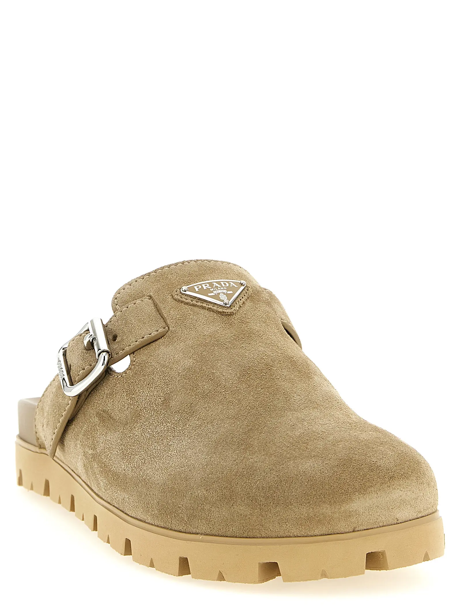 Сабо з трикутним логотипом Prada Triangle logo бежеві