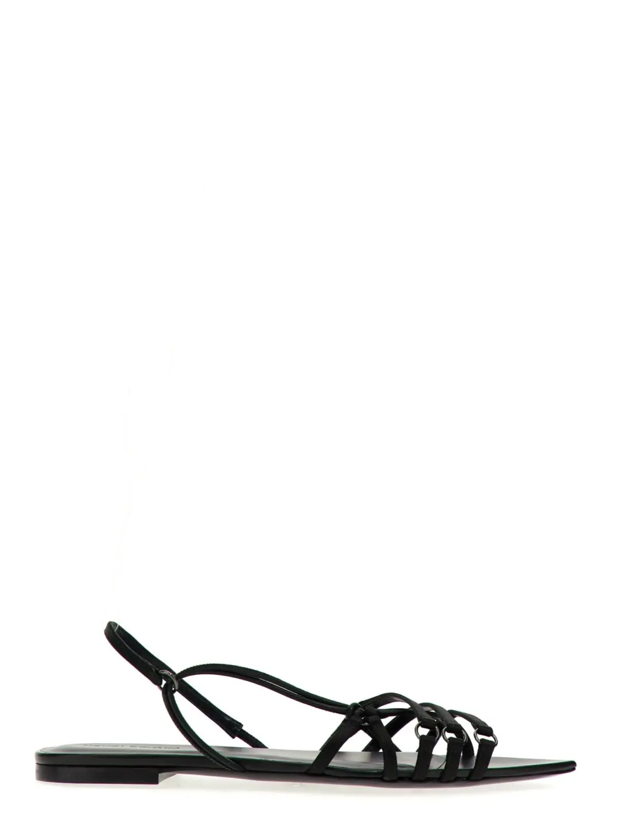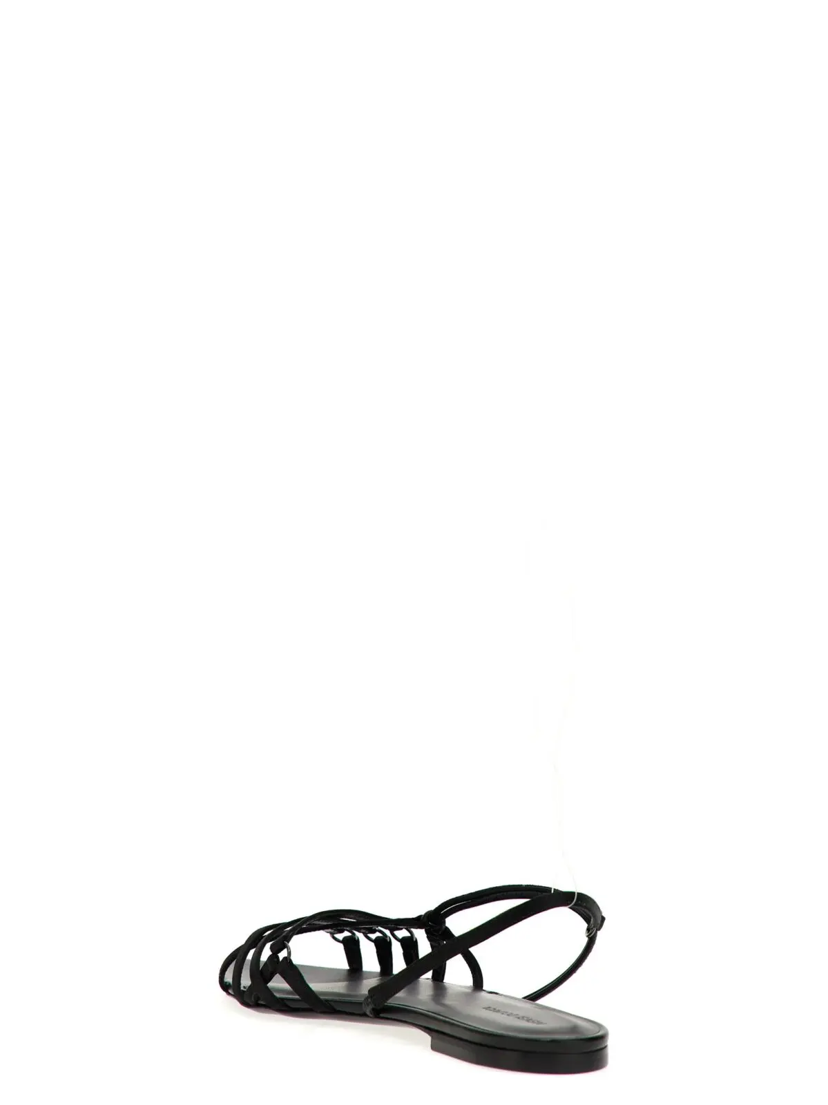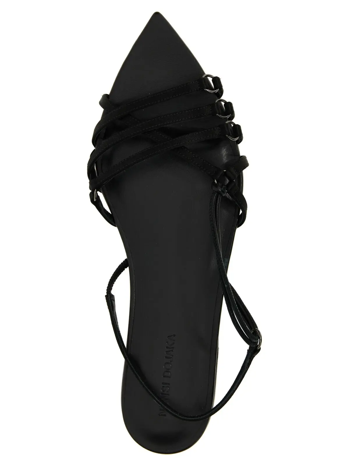 Елегантні жіночі сандалі Nensi Dojaka поєднують у собі розкіш сатину та якість натуральної шкіри. Це низькі сандалі з чорного атласу та шкіри, оснащені підошвою зі 100% козячої шкіри, що забезпечує комфорт та довговічність. Витонченість і сучасний дизайн роблять їх ідеальним вибором для будь-якого виходу.