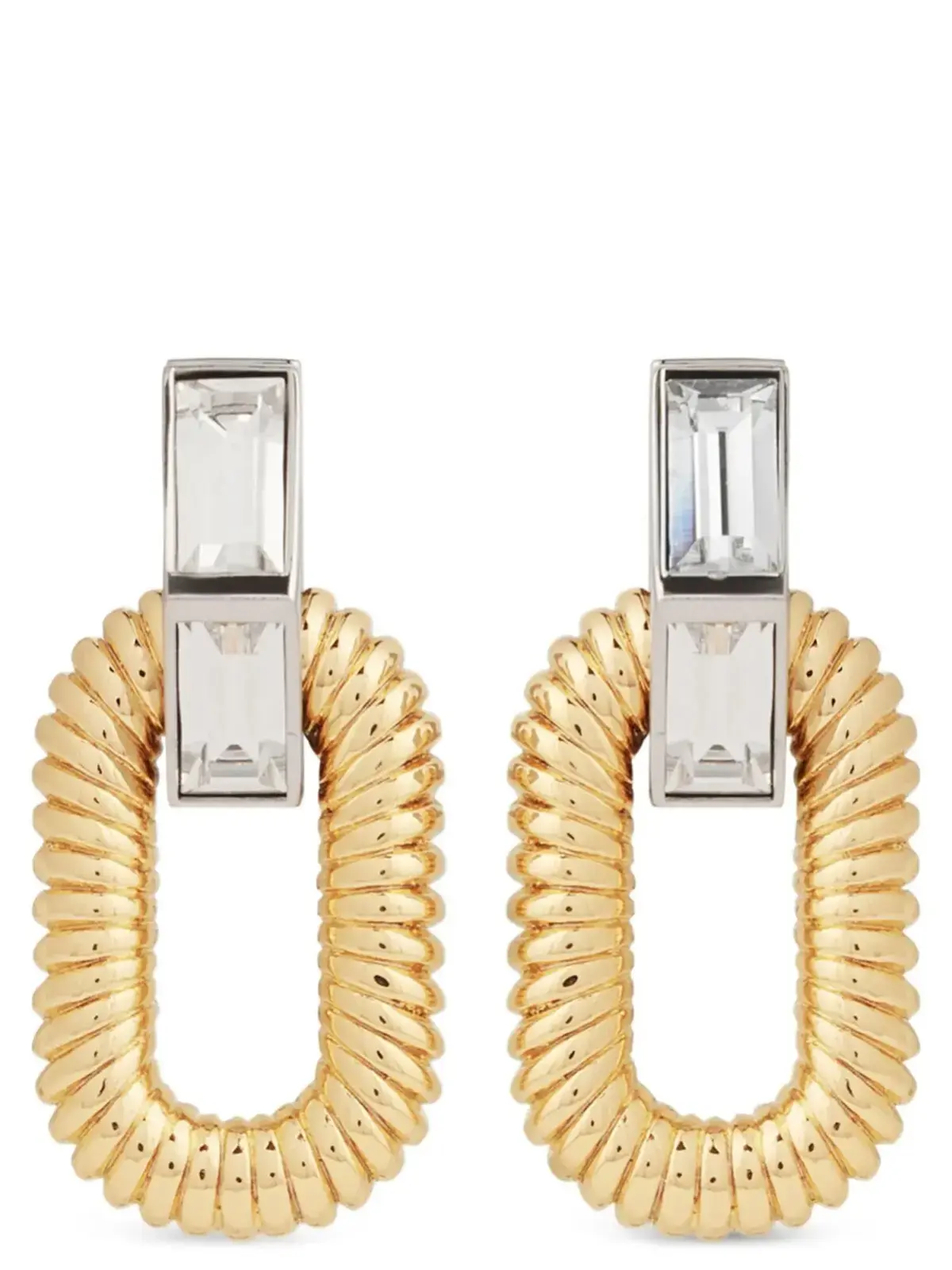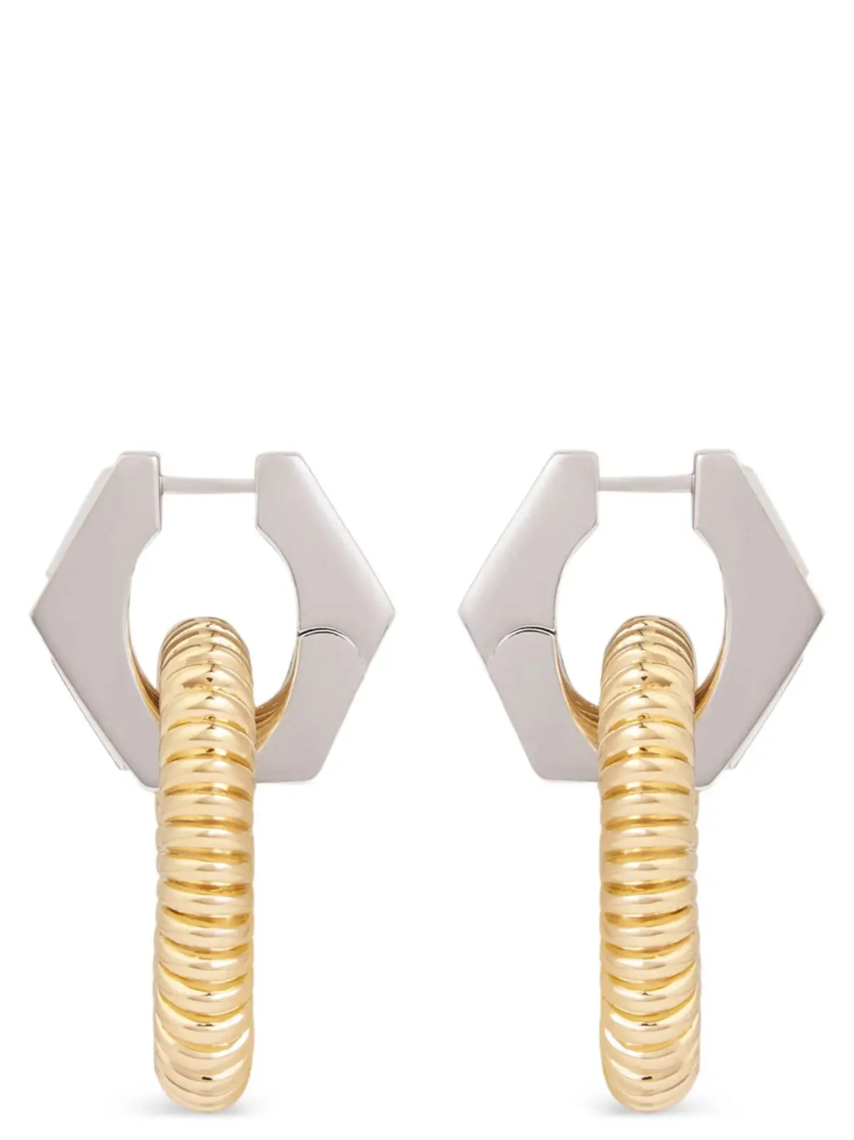 Вишукані сережки Paco Rabanne XL Link поєднують сяйво срібного стразового плетіння з текстурованою золотою сіткою, створюючи неперевершений образ преміум-класу. Виготовлені зі 100% латуні, вони вирізняються інноваційним дизайном із знімною золотою деталлю та зручним замком-бабочкою, що забезпечує стиль і універсальність для будь-яких подій.