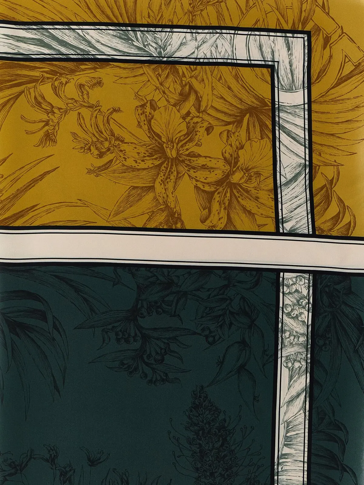 Вишуканий жіночий шарф з двостороннім принтом Gravure, виконаний з 100% натурального шовку, поєднує яскраву багатокольорову палітру та витонченість дизайну. Цей аксесуар підкреслює статус, додаючи образу неповторної елегантності, універсальності та інноваційної стилістичної гармонії.