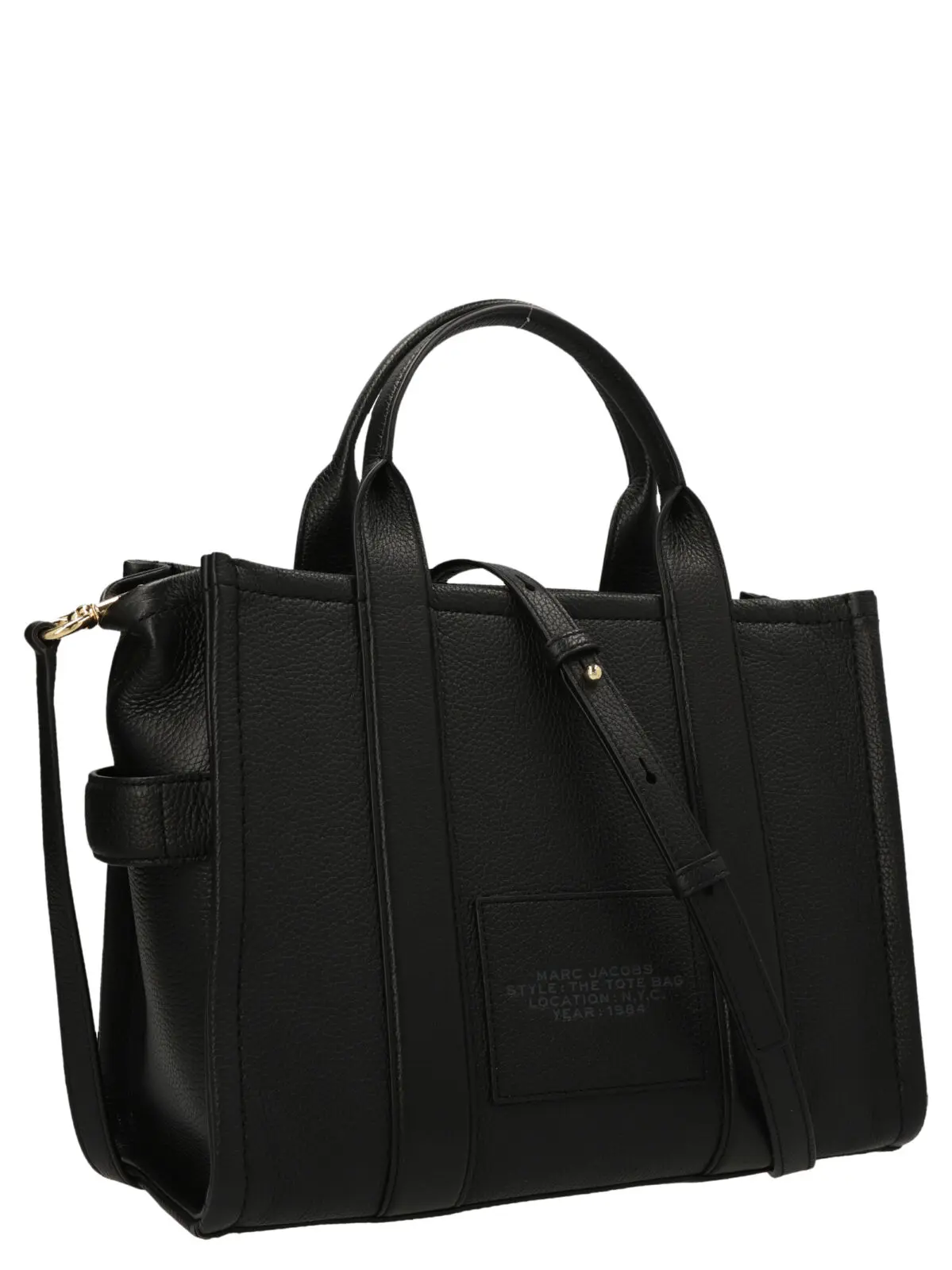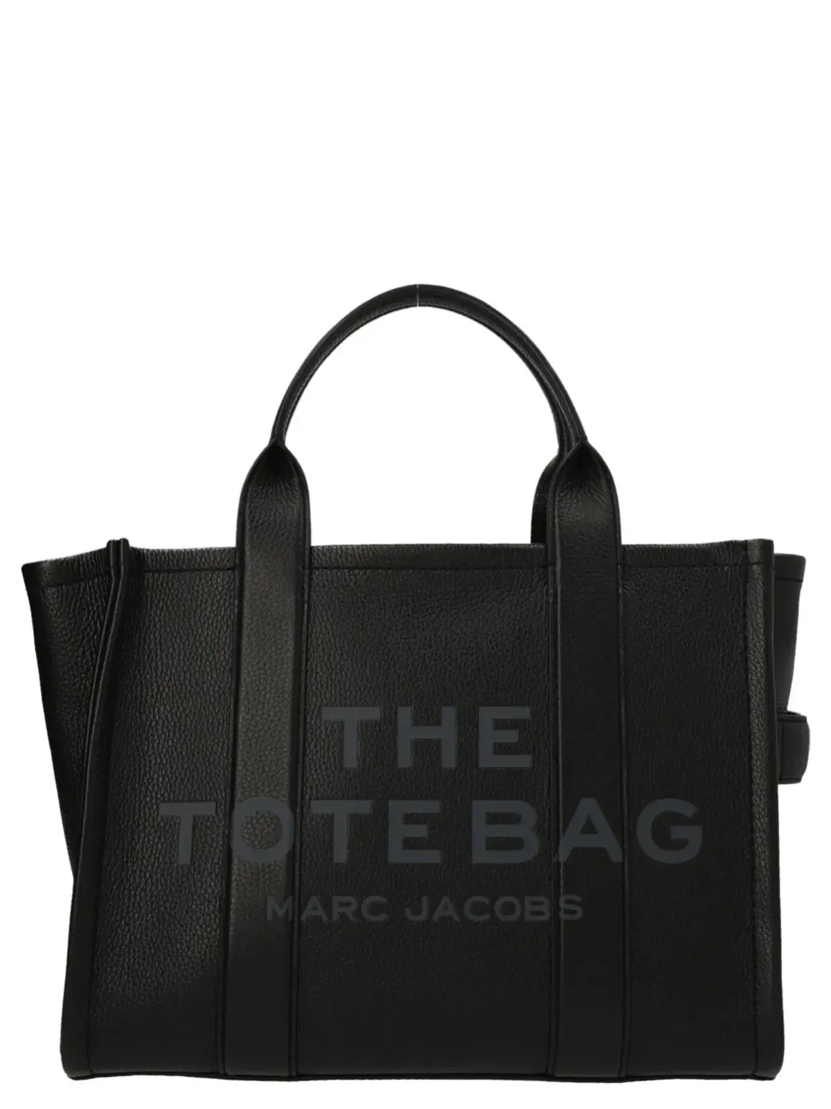 Шкіряна середня сумка для покупок Marc Jacobs The Leather Medium в чорному кольорі. Виготовлена з 100% шкіри якісної яловичини з металевою блискавкою, верхнім ручками, регульованим і знімним плечовим ременем.