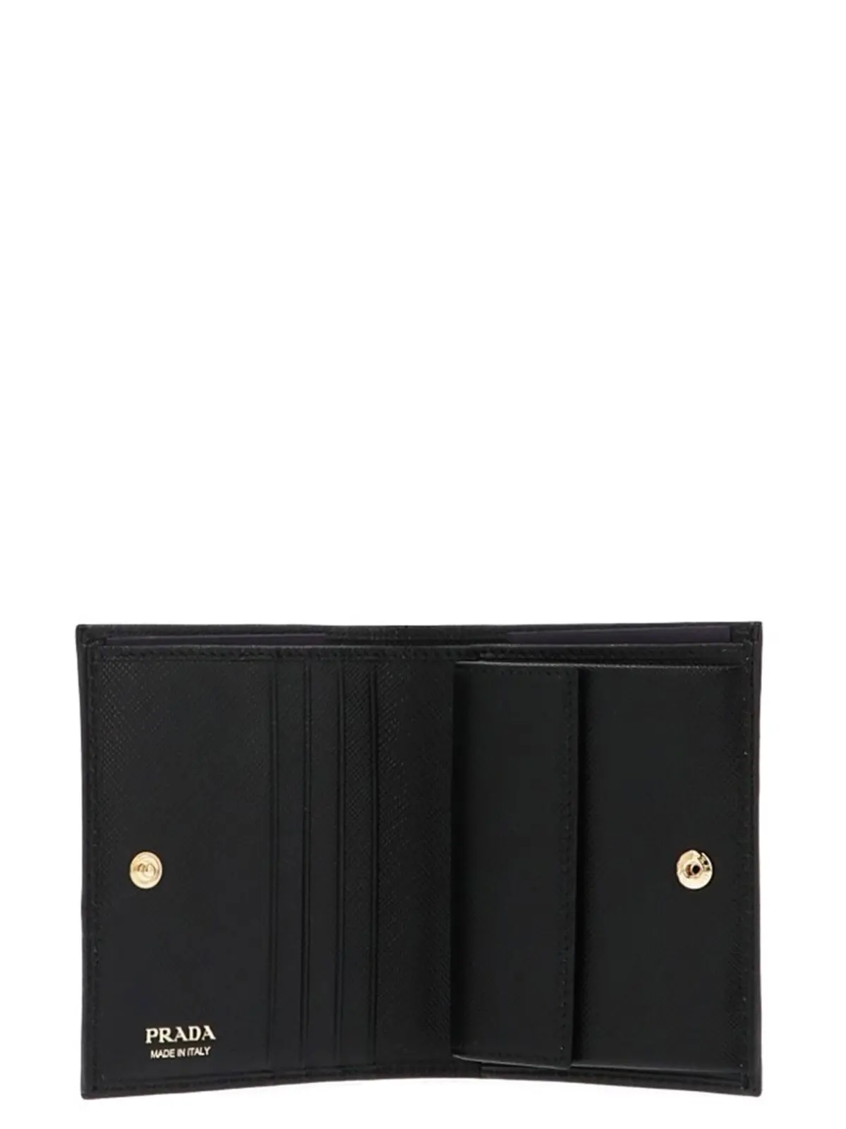 Цей розкішний гаманець виготовлений з високоякісної телячої шкіри Saffiano, яка відома своєю міцністю та елегантністю. Закривається на кнопку, що додає додаткового комфорту у використанні. Вишукані золоті металеві деталі надають гаманцю особливого шарму. Металевий трикутний логотип Prada підкреслює його клас та стиль. 100% натуральна теляча шкіра гарантує довговічність і неперевершену якість.