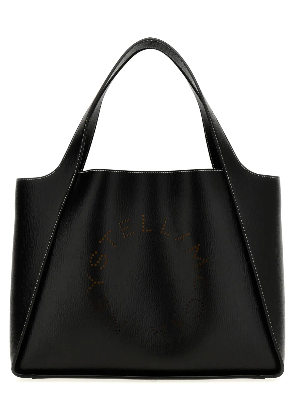 Шопер Stella McCartney Logo у витонченому чорному кольорі є втіленням сучасного стилю та елегантності. Виконаний з інноваційного Alter Mat – 100% поліаміду, він підкреслює відданість принципам екологічності та гуманності, адже не містить шкіри. Передня перфорація з логотипом надає йому унікальності, а контрастна строчка додає динаміки. Подвійні ручки забезпечують зручність у використанні, а знімна внутрішня сумка робить його функціональним та універсальним аксесуаром для будь-якої нагоди.