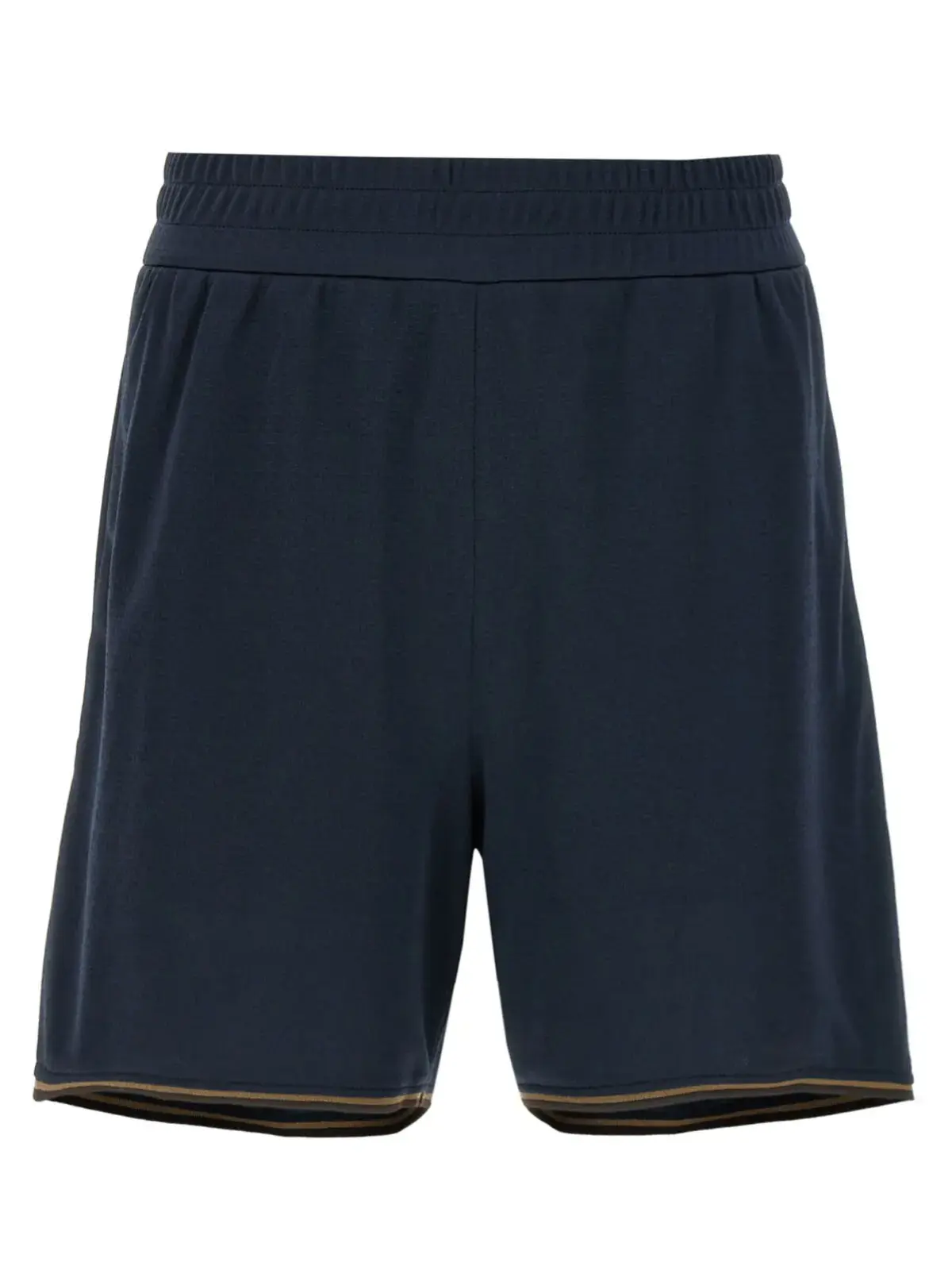 Чоловічі шорти-бермуди Fendi з жакардовим візерунком FF виконані з високоякісного поліестеру, мають еластичний пояс для комфортної посадки, сітчасту підкладку та стильну смужку на низу штанин. Поєднують інноваційний дизайн і універсальність, підкреслюючи статус і вишуканий стиль.