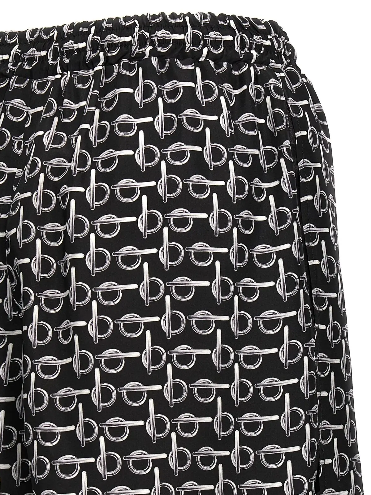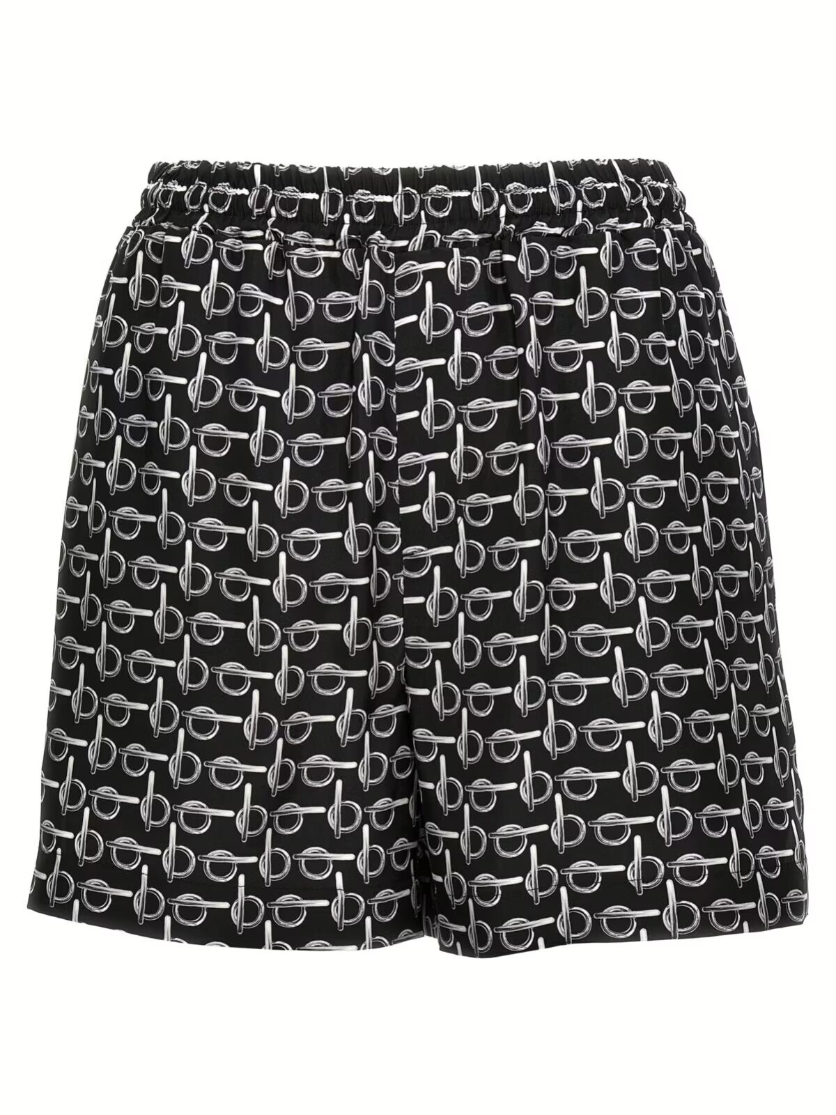 Елегантні жіночі шорти Burberry, виконані з чистого шовку, прикрашені унікальним всебічним принтом. Модель оснащена зручним еластичним поясом зі шнурком та кишенями.