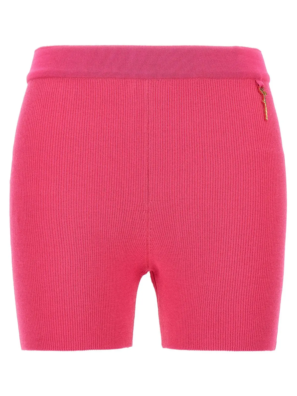 Жіночі велосипедні шорти Le short Pralu від Jacquemus відтінку фуксії з ребристого віскозного матеріалу з міні деталлю логотипу. Виготовлені з 90% віскози та 10% поліаміду.