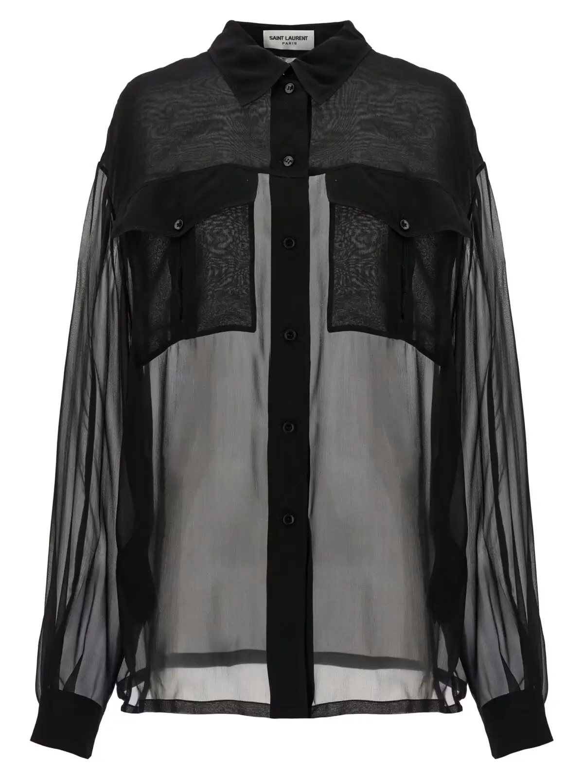 Шовкова муслінова сорочка Saint Laurent Чорна