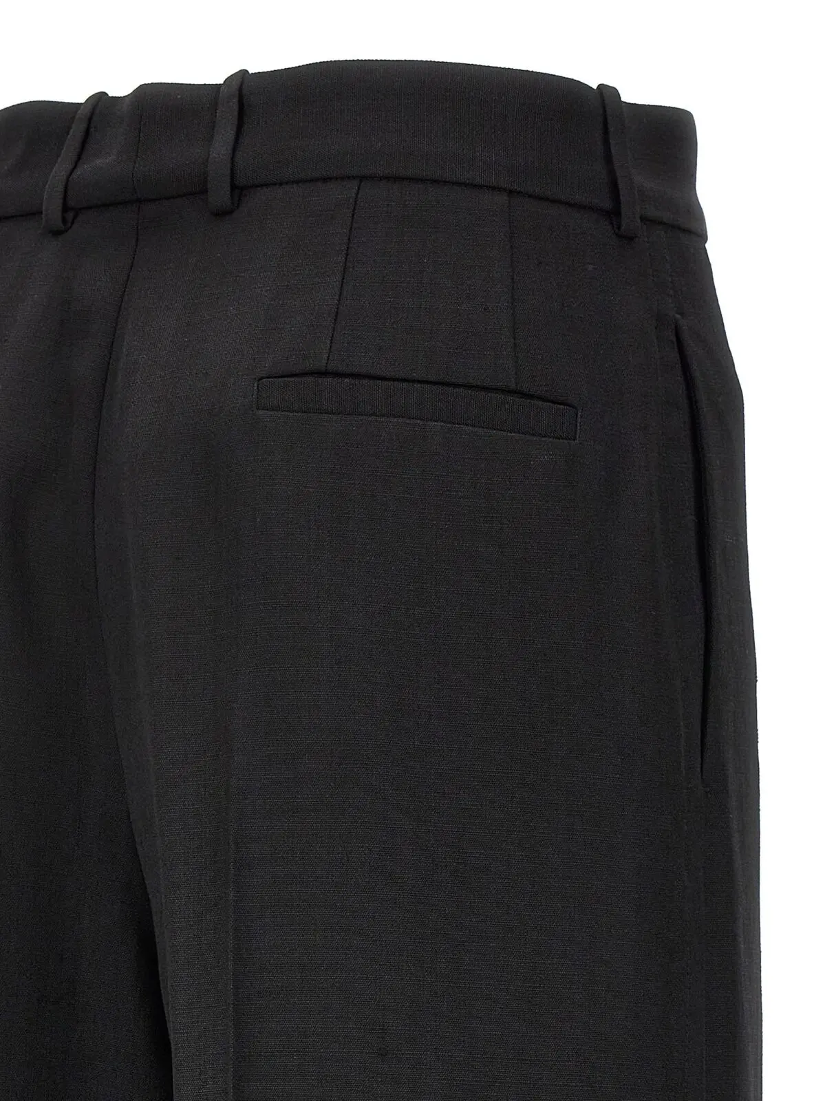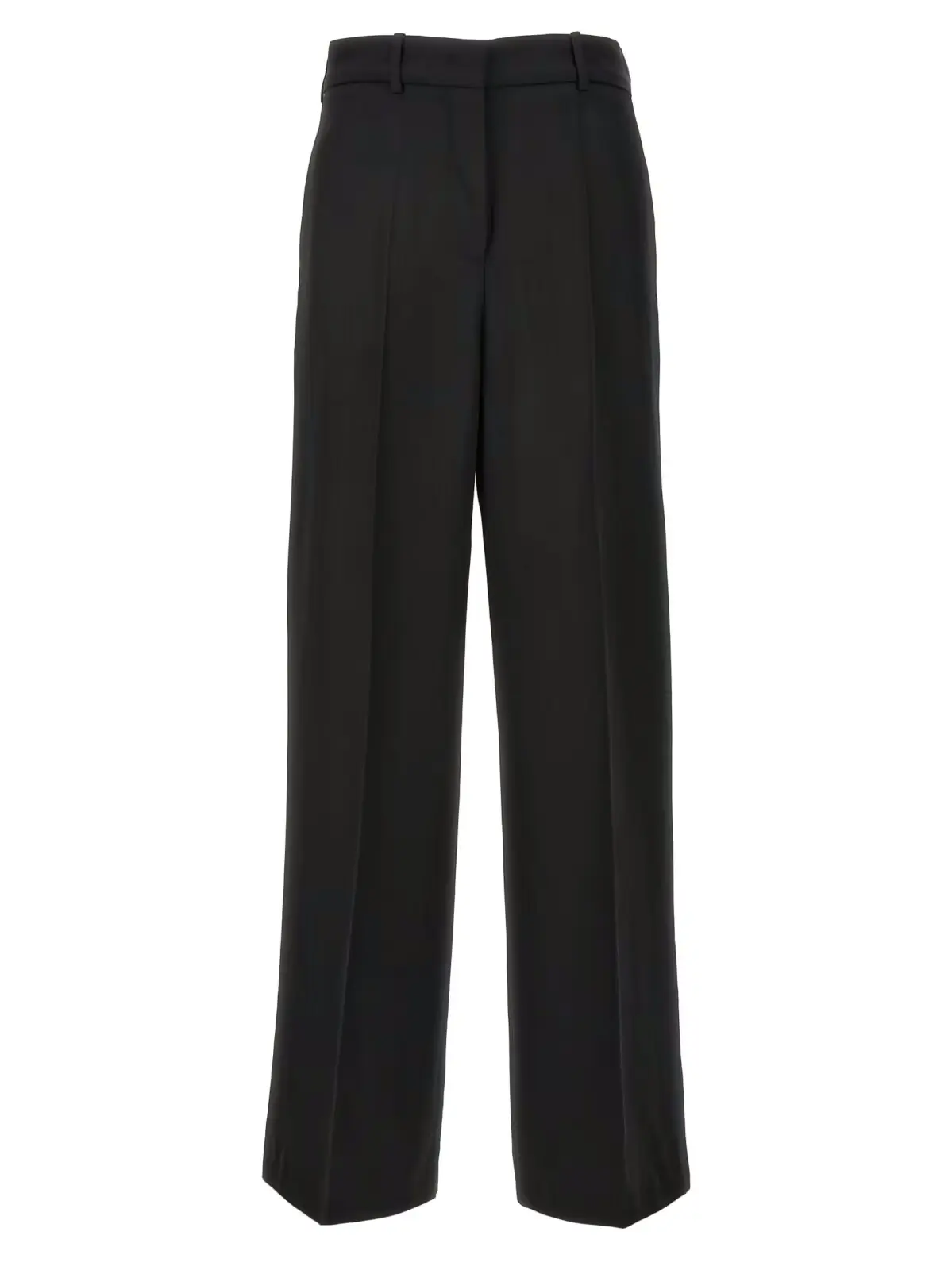 Жіночі чорні штани Jil Sander 61 з віскози та шовку. Застібка на гачок і ґудзик, широкі штани з розтягнутою складкою, кишені. Склад: 58% віскоза, 42% шовк.