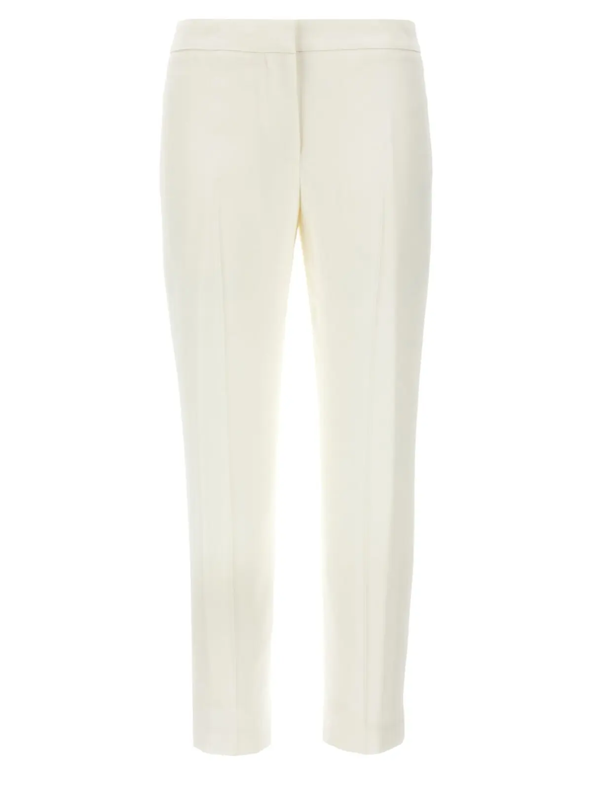 Білі штани Alexander McQueen втілюють елегантність і сучасність. Виготовлені з високоякісної суміші віскози та ацетату, вони забезпечують комфорт та стиль. Прямий силует з середньою талією, ідеально випрасувані складки спереду та практичні кишені роблять цей виріб універсальним для будь-якого випадку. Закриття на передній застібці з гачком і гудзиком підкреслює досконалість дизайну. Ці штани не лише підкреслять ваш статус, а й стануть важливим елементом гардеробу.