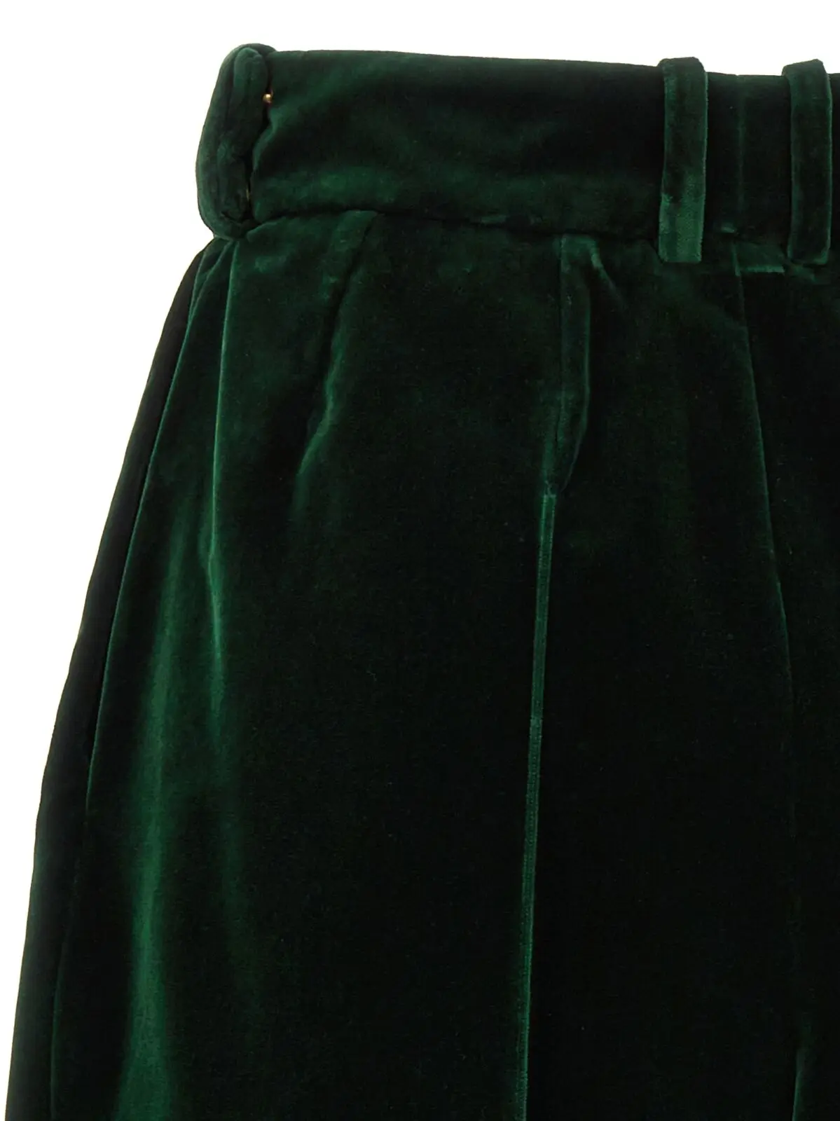 Зелені штани “Boyfriend” від Alexandre Vauthier – це те, що ви шукали! Ці штани з вельвету мають вільну широку ногу та передні складки, що додають їм особливого шарму. Застібка на гачок і кнопку забезпечує зручність і надійність, а кишені додають практичності. Виготовлені з 100% бавовни, ці штани гарантують комфорт і якість. Замовте собі ці штани “Boyfriend” від Alexandre Vauthier і відчуйте себе стильною і впевненою жінкою!