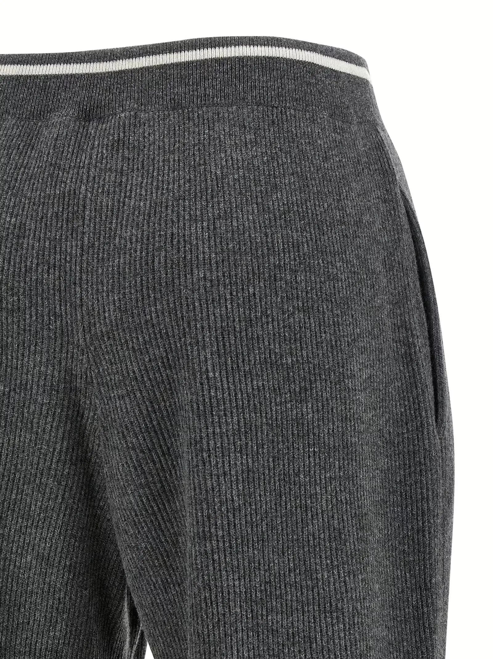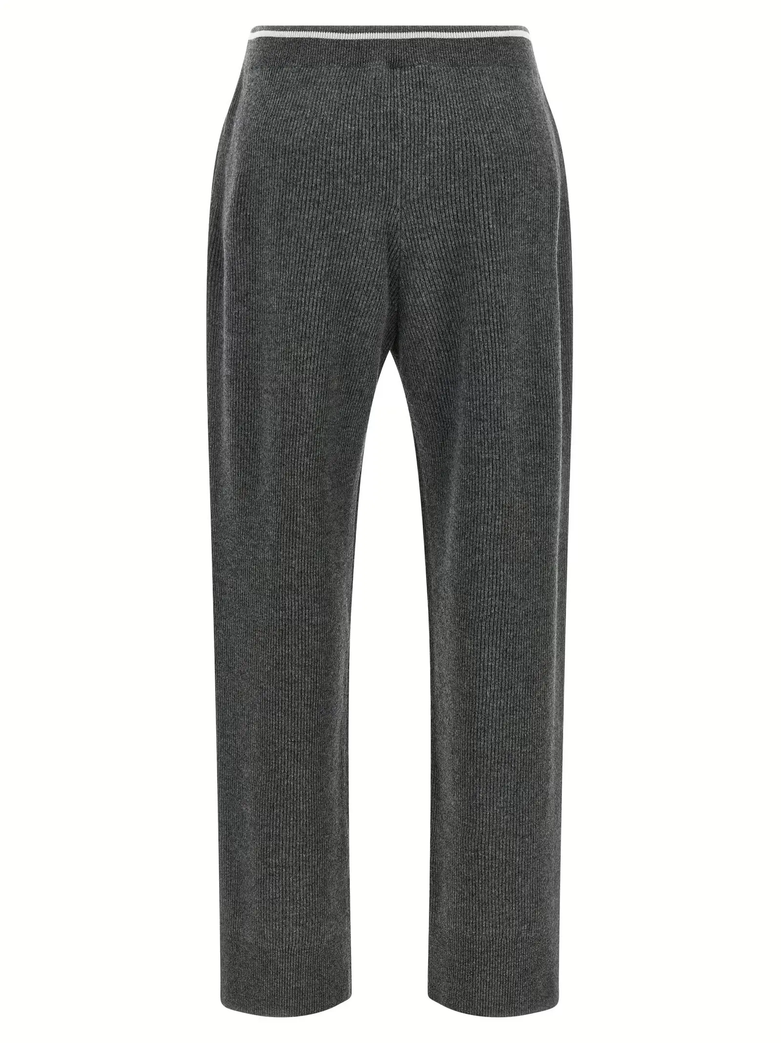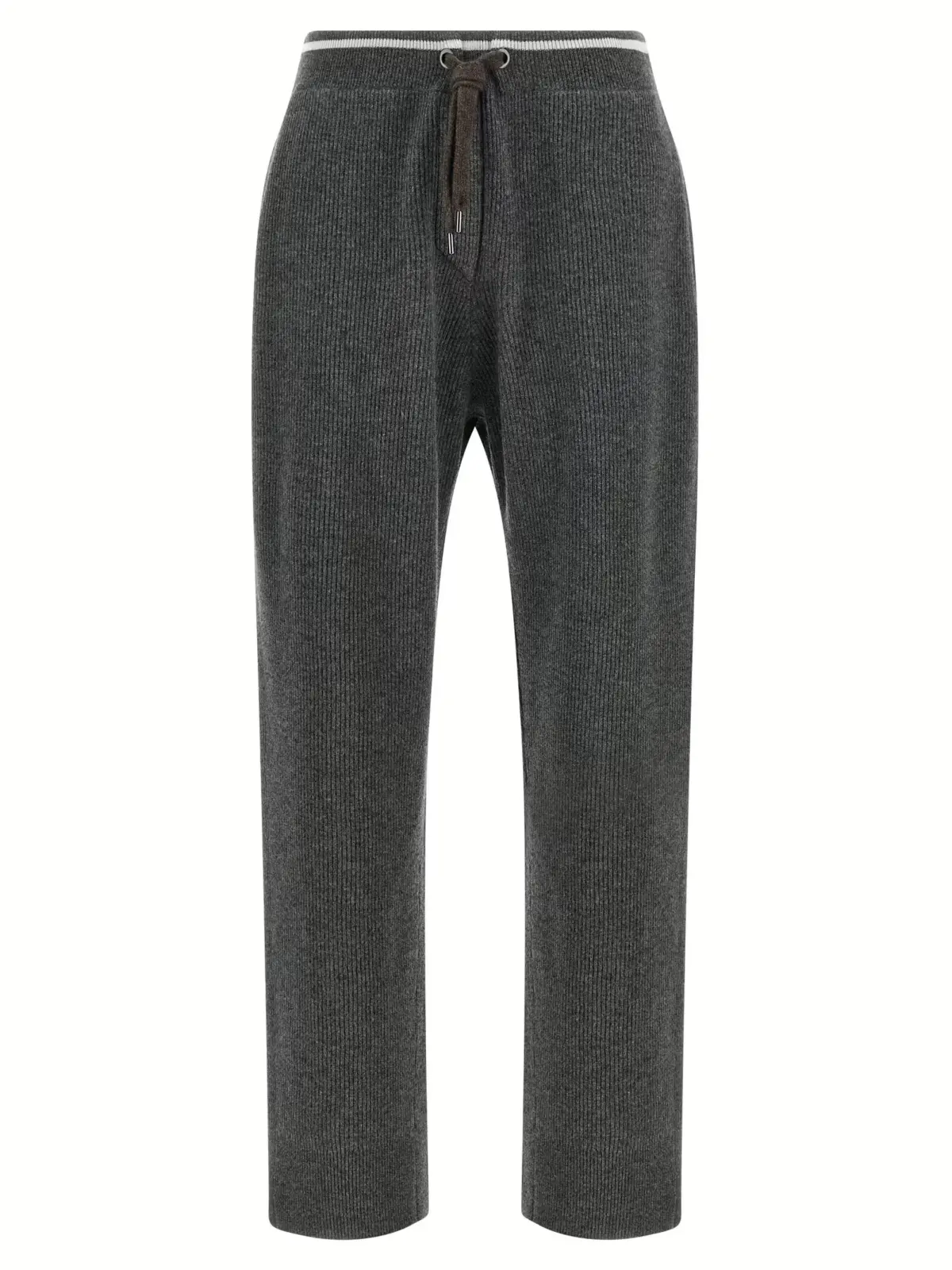 Елегантні жіночі штани Brunello Cucinelli виконані з ніжної суміші кашеміру та шовку, що забезпечує неперевершену м’якість та комфорт. Вишуканий англійський рубчик, контрастні деталі та регульований пояс із еластичною шнурівкою поєднують інноваційність і функціональність, створюючи універсальний образ високого статусу та стилю.