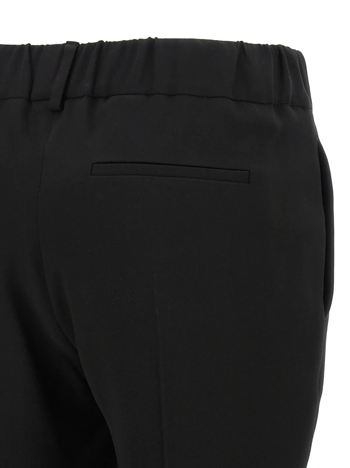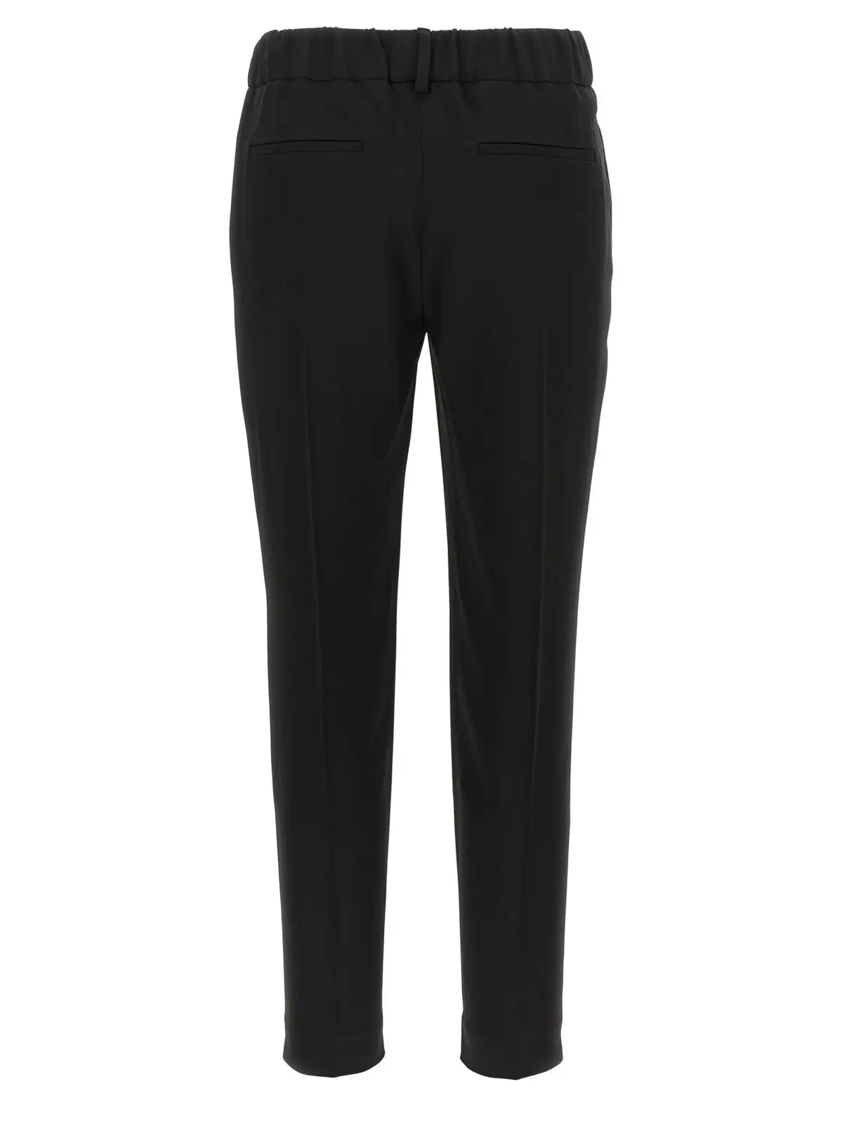 Вишукані жіночі штани Brunello Cucinelli виконані з унікальної суміші шовку та ацетату, що забезпечує неперевершену м’якість і комфорт. Еластичний пояс, прямий крій із ретельно відпрасованими складками та імітацією клапана створюють вишуканий силует, підкреслюючи статус і вишуканий стиль сучасної жінки. Ідеальний вибір для будь-яких урочистих та ділових подій.